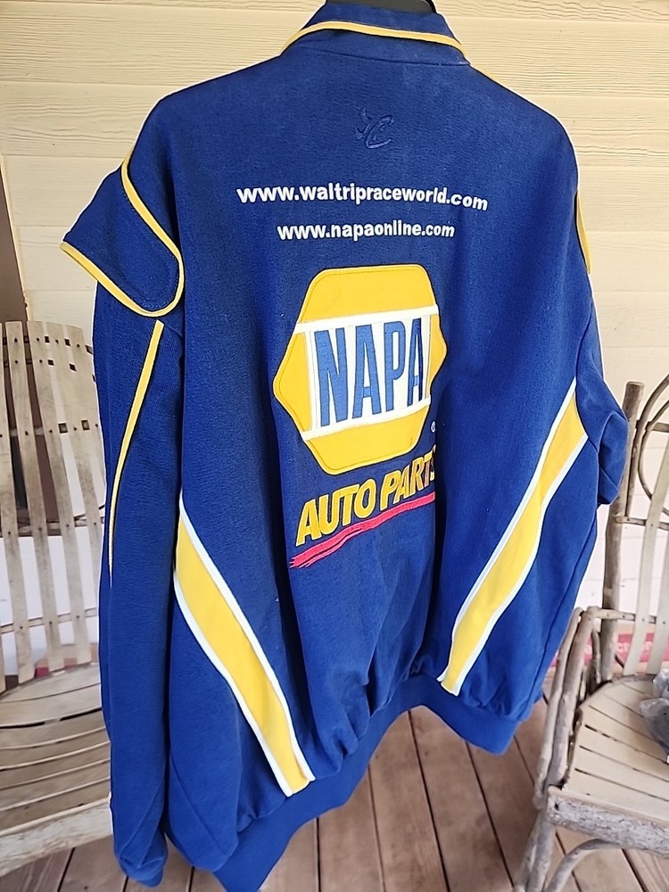 Embrace the racing spirit with the Chase Authentics Napa Michael Waltrip #55 NASCAR Jacket. Designed for the ultimate NASCAR fan, this small-sized, unisex adult jacket features the vibrant blue color scheme and iconic racing number of Michael Waltrip's team. Its authentic design is a perfect homage to the excitement and legacy of NASCAR. Crafted for both style and comfort, the jacket hails from China and showcases the quality that is synonymous with the Chase brand. Whether you're cheering from the stands or adding to your collection, this piece is an essential for any supporter of Michael Waltrip Racing. Keep the races close to your heart and wear your passion for NASCAR proudly.