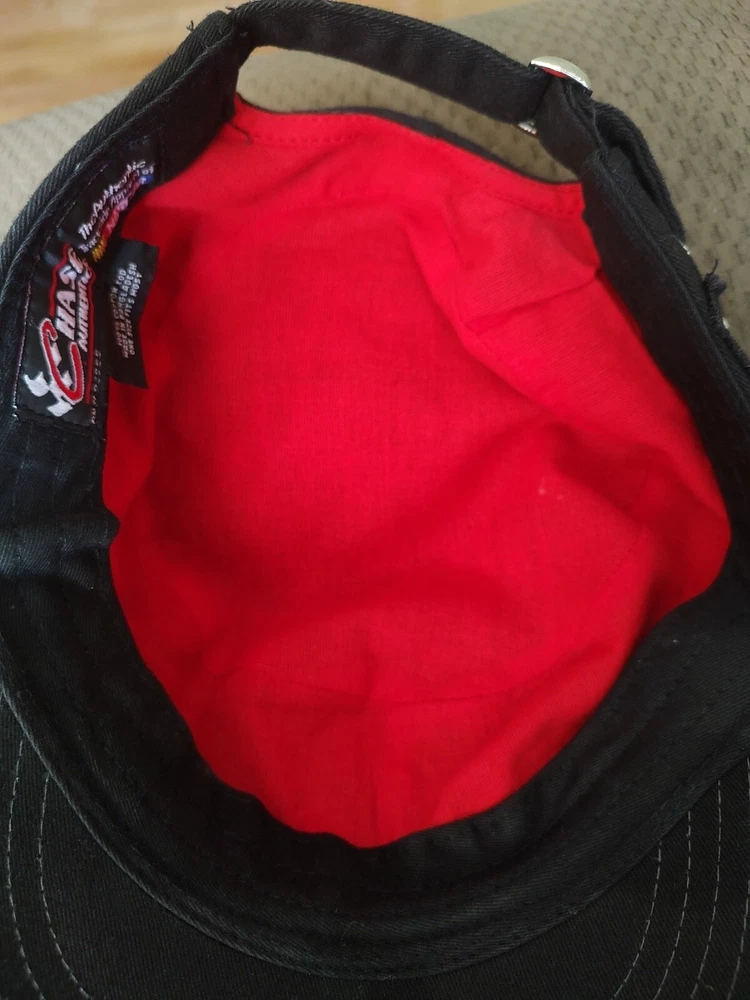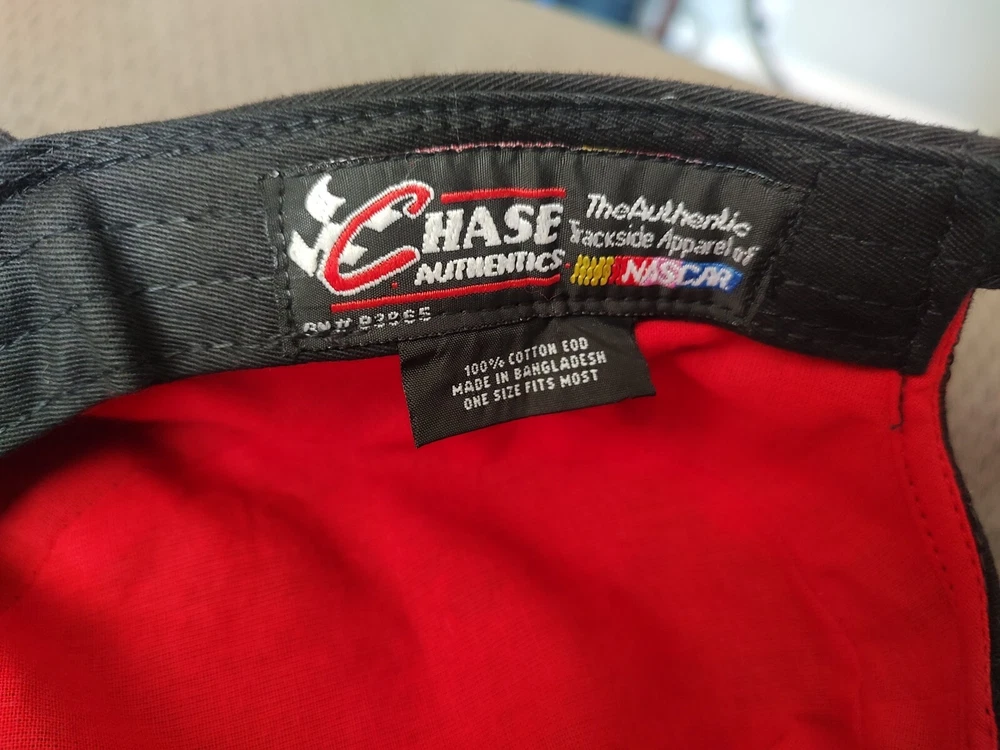 This Chase Authentics strapback cap is a must-have for any Dale Earnhardt Jr. fan. The black cap features an embroidered logo of the legendary NASCAR driver and is officially licensed by his estate. Purchase a Bristol TN raceway in 2013. It is a unisex adult product, perfect for any fan of auto racing and NASCAR. The cap is made for comfort and durability, with a strapback design that ensures a secure fit. It is a great addition to any collection of fan apparel and souvenirs, and is perfect for wearing to races or just out and about. Excellent condition. Get your hands on this stylish and functional cap today.