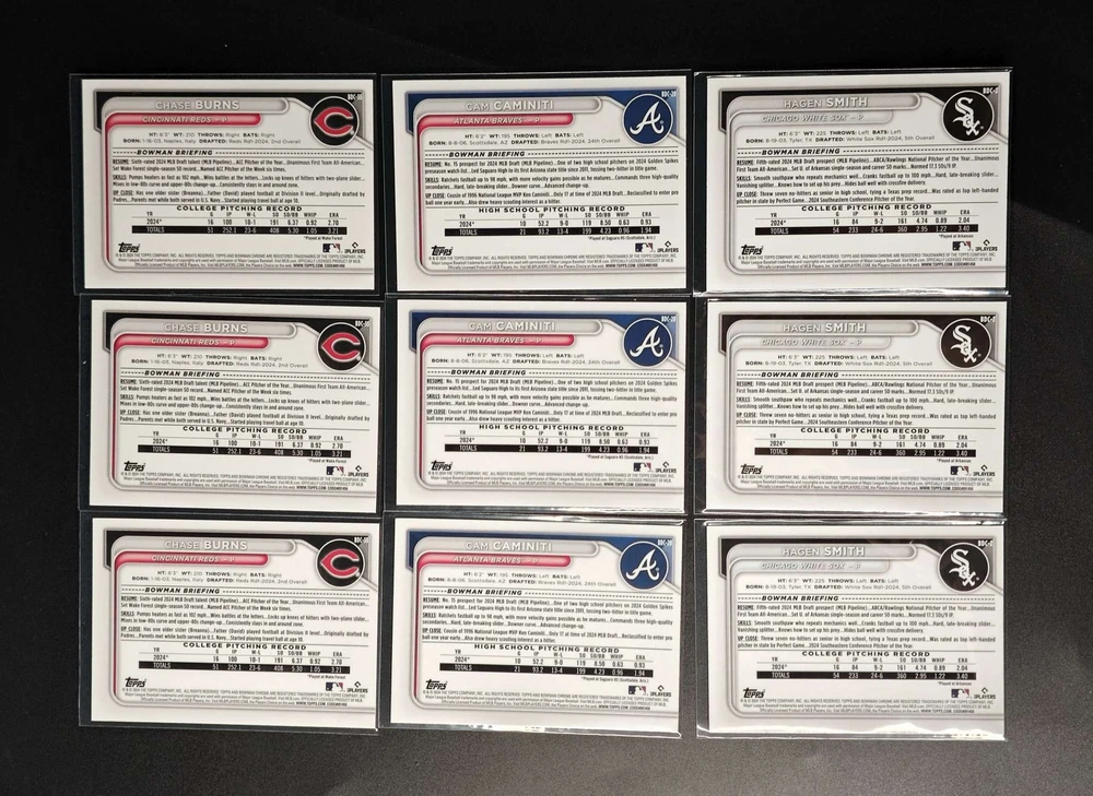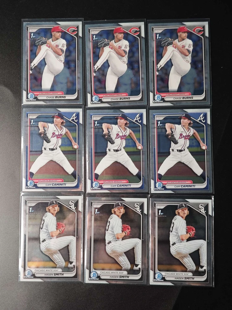 Chase Burns Cam Caminiti Hagen Smith 2024 Bowman Chrome Draft 1st Base Lots9 HD