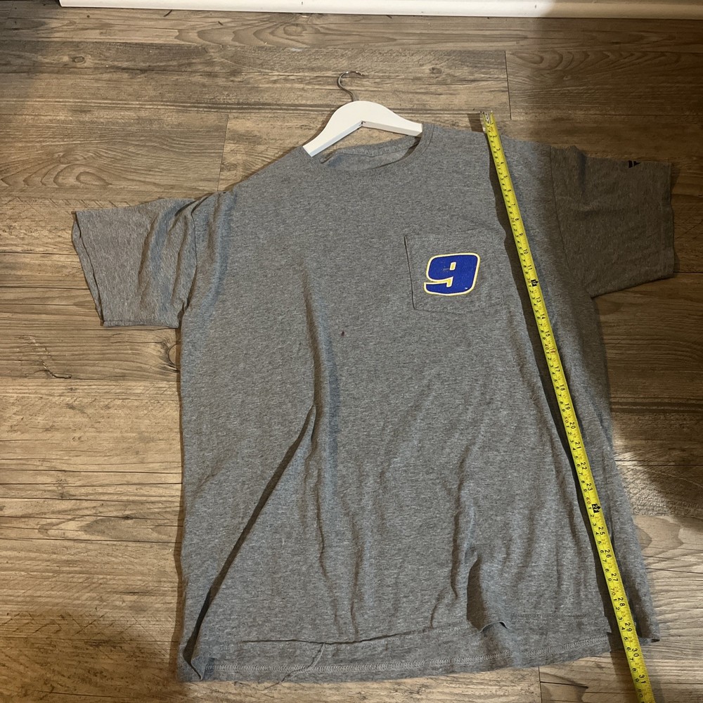 The product is an XL Chase Elliott NASCAR #9 Fanatics T-shirt in gray. This shirt represents the auto racing sport of NASCAR and features the driver Chase Elliott, who drives the #9 car for Hendrick Motorsports. With its high-quality construction and design, this shirt is a must-have for any fan of Chase Elliott or NASCAR in general. It allows fans to show their support for their favorite driver and team while staying comfortable and stylish.