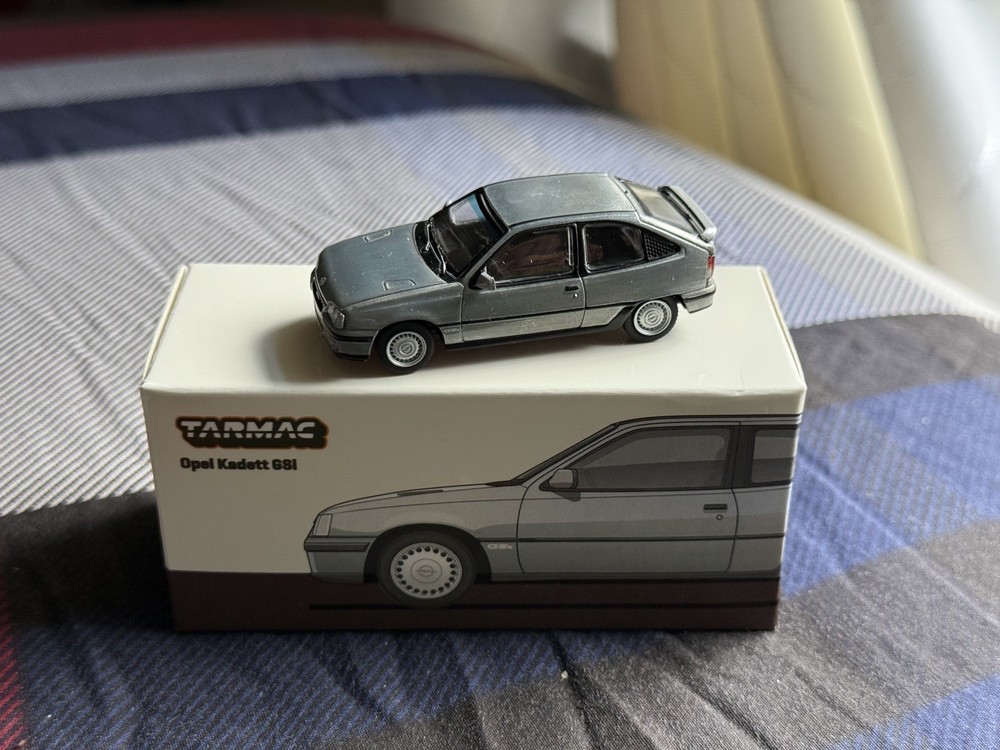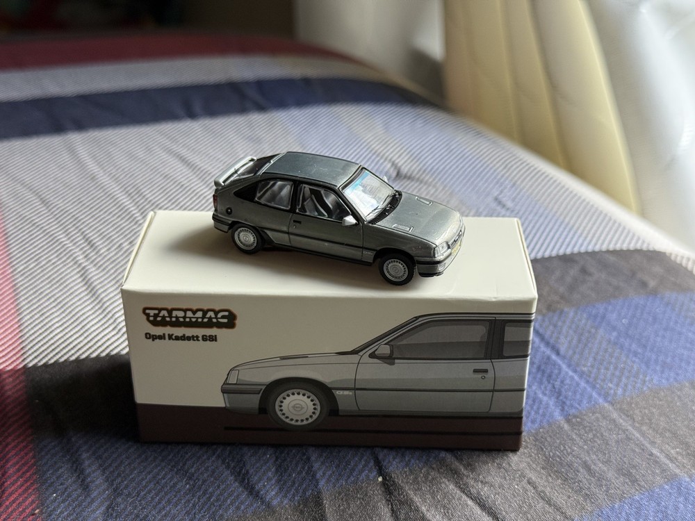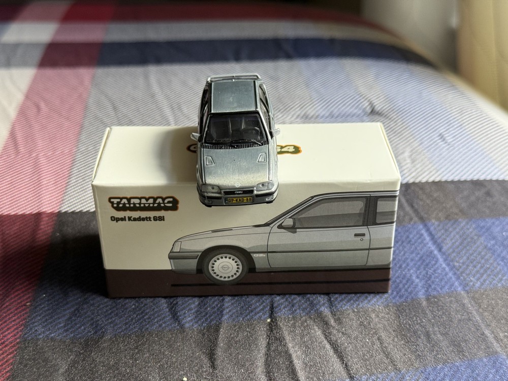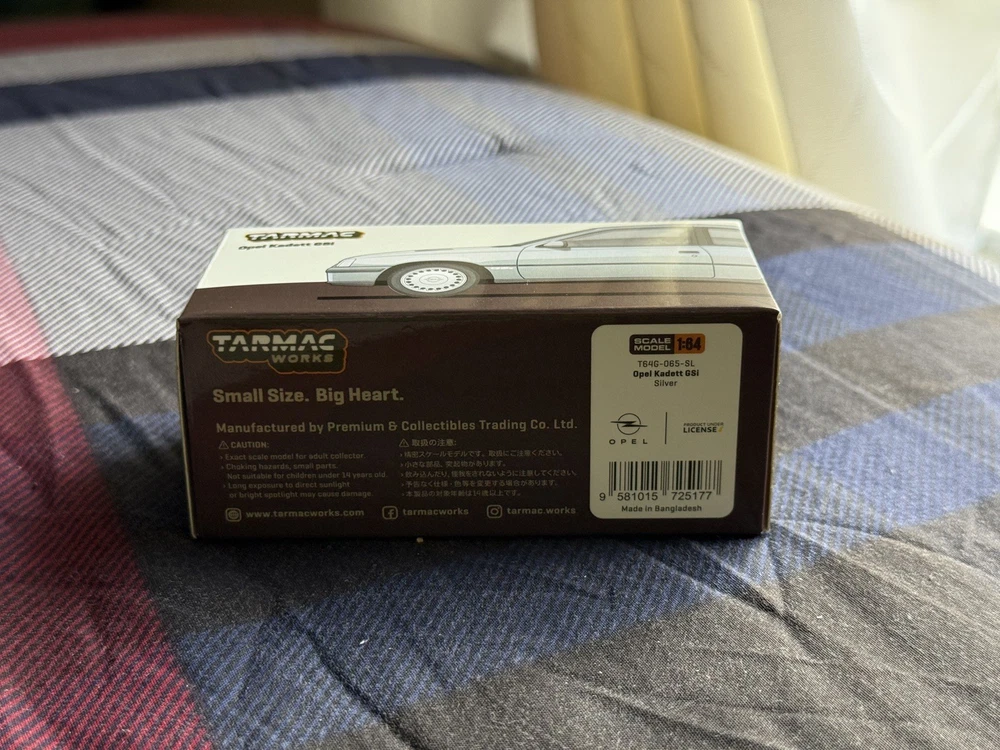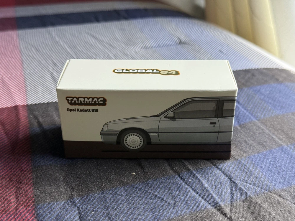 The product is a Tarmac Works Opel Kadett GSi Silver 1/64 scale diecast car from their Global64 series. This "OPEN BOX" Chase model features the iconic Opel Kadett GSi design in silver color, perfect for collectors and enthusiasts. With a recommended age range of 14 years and up, this model is suitable for both boys and girls who love cars and the chase theme. Made in Bangladesh by Tarmac Works, this high-quality replica of the Opel Kadett GSi is a must-have for any diecast car collection.