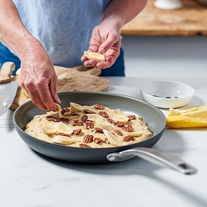 GreenPan’s Thermolon healthy ceramic nonstick coating is free of PFAS, PFOA, lead, and cadmium, so it will never release toxic fumes, even if it’s accidentally overheated Metal utensil safe, this collection's diamond-reinforced coating is incredibly durable Tough Hard Anodized Body is scratch-resistant and designed to stand up to daily demands Oven and broiler safe up to 600°F Dishwasher safe for easy cleanup