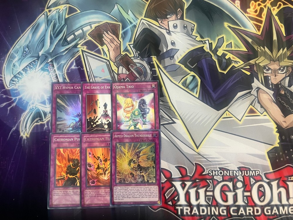 Hello! You are purchasing the deck list below, the cards will be English, real, and near mint to light play condition at worst. All decks are built with the lowest rarities for cards in mind to keep the price of the deck low and affordable for all duelists! Some cards may be in speed duel printing if this is the cheapest available copy of the card, but do not worry these are real cards and legal for tournament use! Purchase with confidence and safety! As an added bonus one pack of card sleeves will be included with your deck! Thanks again and good luck dueling! Now here's the decklist; Monsters: 1| Darkflare Dragon 1| Black Dragon Collapserpent 1| White Dragon Wyverburster 1| Armed Dragon Thunder LV10 1| Armed Dragon Thunder LV7 1| Armed Dragon Thunder LV5 1| Armed Dragon Thunder LV3 1| Armed Dragon LV10 White 1| Armed Dragon LV10 1| Armed Dragon LV7 1| Armed Dragon LV5 1| Z-Metal Tank 1| X-Head Cannon 1| Y-Dragon Head 1| W-Wing Catapult 1| V-Tiger Jet 1| Ojama Yellow 1| Ojama Red 1| Ojama Pink 1| Ojama Green 1| Ojama Blue 1| Ojama Black 1| Light and Darkness Dragon 1| Lightpulsar Dragon 1| Kidmodo Dragon 1| Infernal Dragon 1| Infernal Incinerator 1| Eclipse Wyvern 2| Armed Dragon LV3 2| Masked Dragon Spells; 1| Duel Academy 1| Armed Dragon Blitz 1| Armed Dragon Flash 1| Armed Dragon Lightning 1| Enchanting Fitting Room 1| Frontline Base 1| Level Down!? 1| Level Up! 1| Level Modulation 1| Limiter Removal 1| Magical Mallet 1| Ojamatch 1| Ojamuscle 1| Ojama Country 1| Ojama Delta Hurricane!! 1| Ojamagic 1| Polymerization 1| Thunder Crash 1| Greater Polymerization 1| XYZ Combine Traps: 1| Armed Dragon Thunderbolt 1| Chthonian Blast 1| Chthonian Polymer 1| Ojama Trio 1| The Grave of Enkindling 1| XYZ Hyper Cannon Extra Deck: 1| XYZ-Dragon Cannon 1| VWXYZ-Dragon Catapult Cannon 1| VW-Tiger Catapult 1| Ojama Knight 1| Ojama King 1| Ojama Emperor