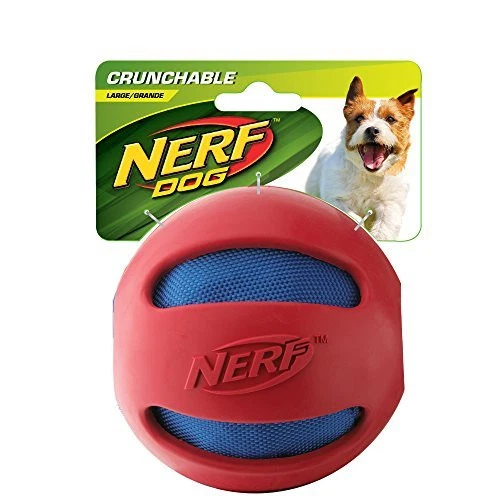 Checker Ball Dog Toy with Interactive Crunch, Lightweight, Durable and Water Resistant, 3.8 Inches for Small/Medium/Large Breeds, Single Unit, Red Interactive: Crunching sound provides hours of entertainment Durable: rubber case adds extra durability Made To Last: Nerf-quality materials allow this toy to be lightweight and durable Specifically designed to be both appealing yet safe for your pet.
