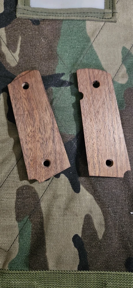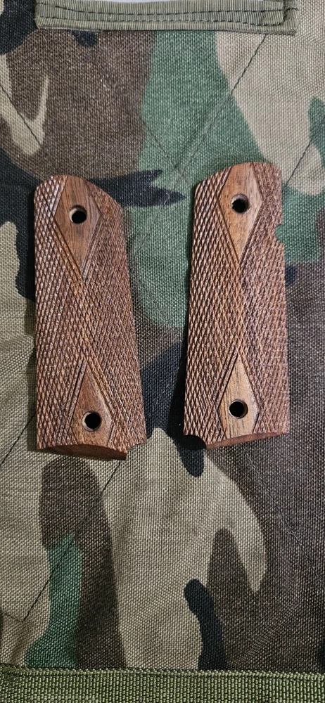 Checkered Walnut 1911 Grips with what looks to be an oil finish.