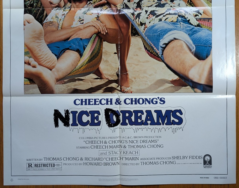 1981's Nice Dreams was Cheech Marin's and Tommy Chong's third film which also starred Stacy Keach and had a cameo by Timothy Leary. This original 27x41 1-sheet is in excellent folded condition with no holes, tears, marks or bends. The corners are good. Printed on glossy and heavier weigh paper than most posters. Shipped folded in a sturdy mailer. I worked in movie theaters in Albany, NY and Boston, MA from 1972 to 1983 and saved many items of movie memorabilia. I’ve had this poster since the release of the movie. MohawkValley20 has listed a variety of movie memorabilia including one-sheets, B&W and color stills, programs, press-kits, pressbooks, and promotional t-shirts. We also list vintage and antique collectibles. Check out our other listings!