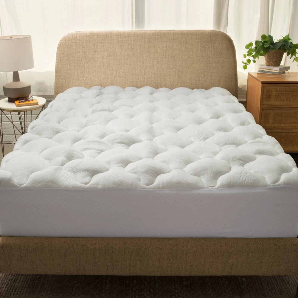 Indulge yourself with the ultimate in bedding luxury when sleeping on this plush rayon from bamboo mattress pad. Size: Twin, twin XL, full, queen, king, California kingLayer Fabric: 250 GSMShell materials: 60-percent polyester 40-percent rayon from bamboo top coverFill materials: Hypoallergenic hollow fiberPocket depth: 15-percent with elasticThread count: 123-bottom coverConstruction: Design quilted patternDimensionsTwin: 39 inches wide x 76 inches long (76 ounces fill)Twin XL: 39 inches wide x 80 inches long (81 ounces of fill)Full: 54 inches wide x 76 inches long (105 ounces of fill)Queen: 60 inches wide x 80 inches long (126 ounces of fill)King: 76 inches wide x 80 inches long (163 ounces of fill)California King: 72 inches wide x 84 inches long (158 ounces of fill) Free Shipping Over $49.99* Details Cheer Collection All Season Plush Rayon from Bamboo Mattress Brown Product Description: Indulge yourself with the ultimate in bedding luxury when sleeping on this plush rayon from bamboo mattress pad. SizeTwin, twin XL, full, queen, king, California king Layer Fabric250 GSM Shell materials60-percent polyester 40-percent rayon from bamboo top cover Fill materialsHypoallergenic hollow fiber Pocket depth15-percent with elastic Thread count123-bottom cover ConstructionDesign quilted pattern Dimensions Twin39 inches wide x 76 inches long (76 ounces fill) Twin XL39 inches wide x 80 inches long (81 ounces of fill) Full54 inches wide x 76 inches long (105 ounces of fill) Queen60 inches wide x 80 inches long (126 ounces of fill) King76 inches wide x 80 inches long (163 ounces of fill) California King72 inches wide x 84 inches long (158 ounces of fill)