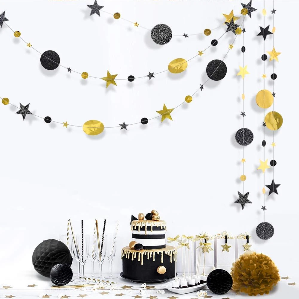 Cheerland Black Gold Party Decorations Moon Star Garland Hanging Stars Circle Streamer Banner Backdrop Decor Birthday Bachelorette Bridal Shower NYE New Year EID Ramadan Graduation Party Supplies 3 Packs Glitter Shining Black Gold Star Party Garland Kit: 鈥揑ncludes 3 strings of 13 feet glittering and shiny black gold star and moon circle garlands. Totally 39 ft. The biggest paper circle is 3.5 inches in diameter. 鈥揗ade with High quality card paper, not easy to bend, sturdy string and long-lasting color and coating. Unravel with care to avoid product tangle. 鈥揊its most events and occasions. Easy to use at home office, classroom or party. NO DIY needed. 鈥揈nvironmental friendly. Easy to remove and store for future reuse. Fits Multiple Occasions: - Wedding Engagement Decoration - Bridal Shower Bachelorette Hen Party Decoration - Graduation Party Decoration - Retirement Party Decoration - Bday/Birthday Decoration - Sweet 16 Decoration - Christening Decoration - Anniversary Decoration, Esp. Golden Jubilee - Christmas New Year Decoration - Ramadan, Hari Raya and EID Deoration - Other Black Gold Theme Party Decorations 馃憤路Package Includes: 3 strings of 13 feet glittering and shiny black gold star and moon circle garlands. Totally 39 ft. The biggest paper circle is 3.5 inches in diameter. 馃憤路Black Gold Party Decorations: The black and gold stars and moons streamer made of glitter and shining card paper sway in the breeze and reflect light from all angles. These garlands are gorgeous party decorations to create a elegant and classy atmosphere at home or any festive event. 馃憤 路Brilliant Decor for Most Occasions: These garlands are perfect decorations for most parties and celebrations such as wedding, engagement, bachelorette, bridal shower, baby shower, christening, birthday/Bday, sweet 16, graduation, retirement, Christmas and NYE New Year Eve, space themed parties, galaxy themed, proms, homecoming, fantasy themed, halloween, masquerade, galactic themed party, star wars party. They are also good ornaments for Islamic celebrations for Ramadan, Hari Raya and EID. 馃憤 Easy to Use: NO DIY needed. Unravel the strings with care to avoid tangling. Just hang them or stick them on wall, window, furniture, from ceiling or as background, backdrop of photo booth. Easy to remove and store for future reuse. 馃憤 Quality Guarantee: High quality card paper, not easy to bend, sturdy string and long-lasting color and coating. Shipping from the USA All of our products are shipped from the USA, ensuring quick delivery to your destination. Payment We offer the following payment methods: PayPal, credit card, bank transfer, and eBay's secure payment system. Free Shipping & Free Returns Shipping within the USA is FREE. Additionally, any return is absolutely free for you. Risk-Free Purchase You have the option to return an item within 30 days without any justification. We cover the return shipping costs! Fast Shipping We ship immediately upon receipt of payment. Generally, the package is delivered within 2-3 days in the USA. If it takes longer, we will contact you. Quality and Costs Made in Europe, USA, China No customs fees or additional charges Total satisfaction guarantee Invoice with declared VAT available upon request in .pdf format Feedback Your feedback is very important to us. After you pay for your purchase, you will automatically receive positive feedback from us.