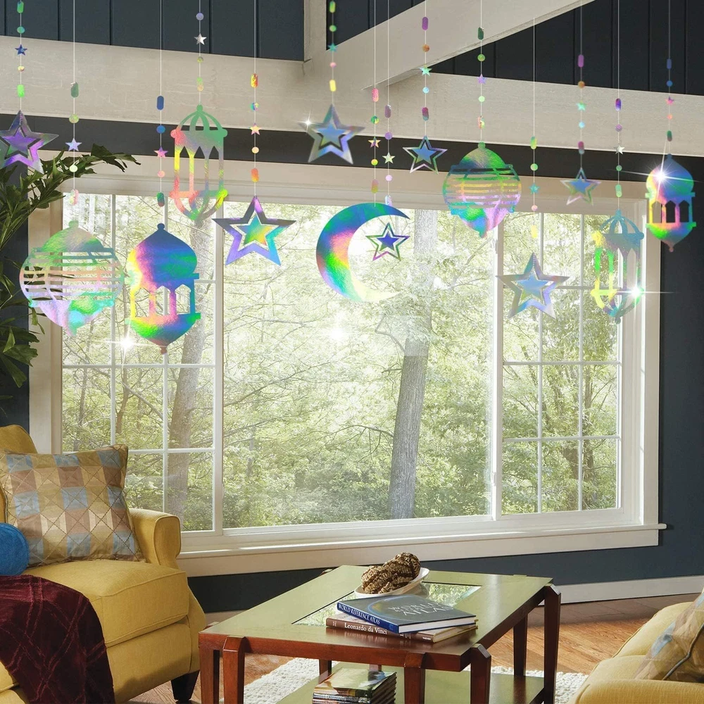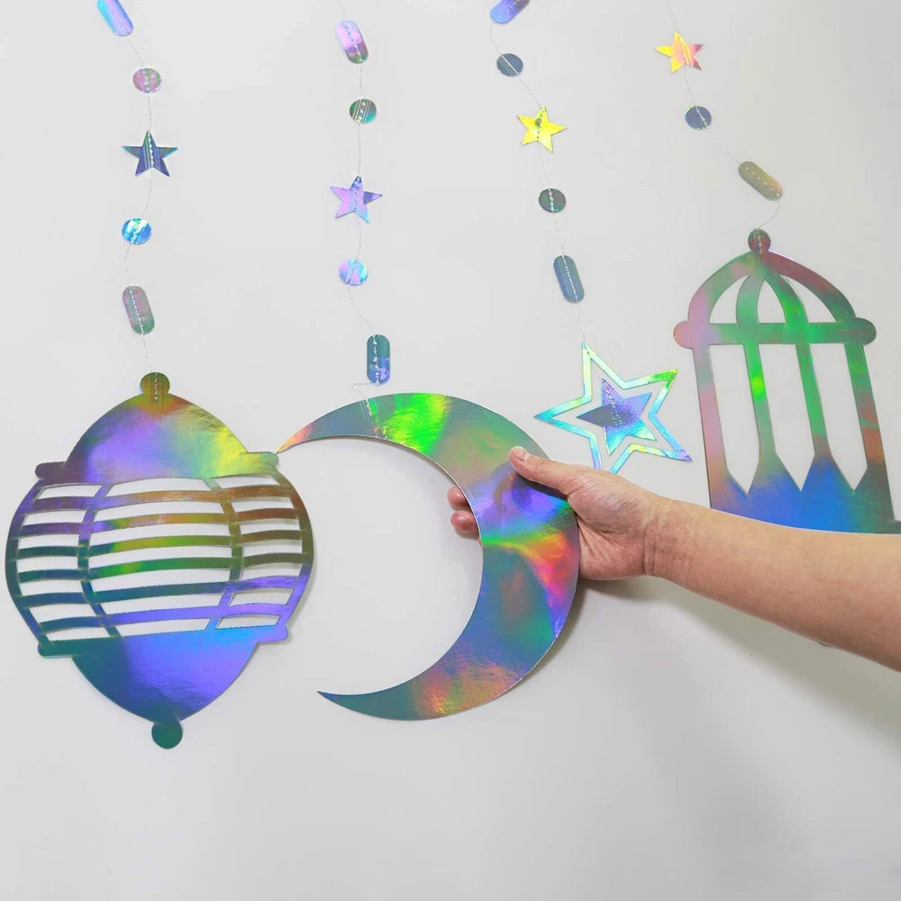 Cheerland Iridescent Star Moon Lantern Garland Decorations for Ramadan Eid Mu...