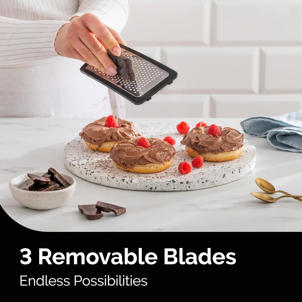 Cheese Grater with Garlic Crusher - Box Shredder - Clear Product Details Color: Clear Material: Stainless Steel, Plastic Brand: Joined Style: Tableware Product Dimensions: 5.35"L x 3.58"W x 9.7"H Item Weight: 0.6 Kilograms Shape: Rectangular Is Dishwasher Safe: No Manufacturer: Joined Item Weight: 1.32 pounds Item model number: cheese grater Hand Grater with Bonus Garlic Press Includes 3 different grating surfaces, removable non-slip base, 2 different measurement units, a thick and comfortable handle, and vegetable peeler. In addition, this versatile kitchen gadget comes with a garlic mincer that can be used as a herb grinder, garlic peeler and garlic chopper. It will streamline your cooking by multitasking as a ginger grater, carrot shredder, parmesan cheese grater and much more. Cheese Grater With Storage Container And Measurements. The smart base of this potato grater saves you time and space by storing your freshly grated food, while the clear sides provide two units of measurement: cups and milliliters. There's no messy kitchen, no need for extra utensils to grate into or measuring devices. The non-slip base and thick handle provide grip and comfort. Effortless Blade Switching. This kitchen grater offers 3 different grating surfaces: coarse, medium, and fine. Switching between surfaces is zero-hassle, with no need for multiple different graters. The compact design fits conveniently into drawers and saves you kitchen space. Multifunctional Y-Peeler Included. It features sharp peeler and julienne blades and potato eye and apple spot removers on the sides. The handle is large, comfortable, and sturdy. So for anything that your versatile handheld cheese grater cannot do in the kitchen, the peeler and garlic chopper can fill in. Easy To Clean. The grating surfaces and base are removable for easy cleaning and are top-rack dishwasher safe. We've also included a cleaning brush for the finer surfaces and dried and sticky bits that are difficult to clean. This small cheese grater is convenient all-around! The Cheese Grater with Garlic Crusher,, Measurements, and Removable Blades, is a convenient and versatile kitchen gadget that will streamline your cooking. It includes 1、3 different grating surfaces, 2、 removable non-slip base3、2 different measurement units, 4、a thick and comfortable handle 5、a multifunctional vegetable peeler with a julienne blade and potato eye no longer need separate and messy grating plates and measuring devices; this is a cheese grater with storage container and 2 units of measurement: cups and milliliters. Switching between the coarse, medium, and fine grating surfaces is effortless, with no need for multiple graters. It's also easy to clean with the removable grating surfaces and a cleaning brush included.