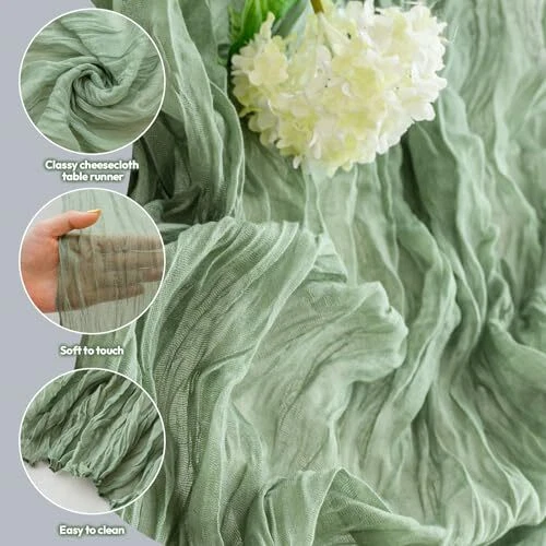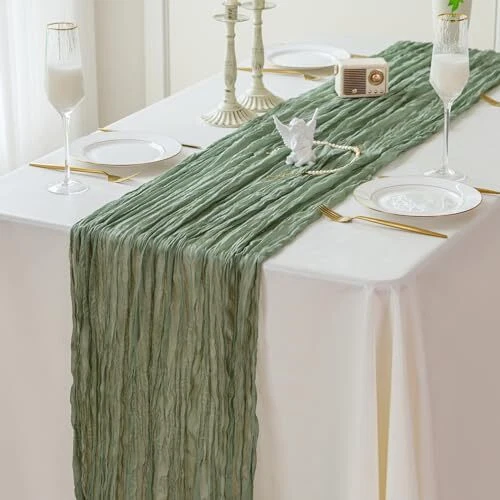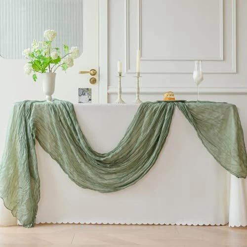 Return Policy Fast Delivery Trusted seller Cheesecloth Table Runner 10ft Boho Rustic Gauze Cheese Cloth Table Runner for Wedding Party Bridal Baby Shower Birthday Reception Feasts Ceremoy Table Decorations (sage Green) Product Description Polyester SIZE - The size of each rustic cheesecloth table runner is approx.35" width and 120” length, which is large enough to cover a rectangle table or a round table and makes it ideal for special occasions w you need to host a lot of guests like weddings. We offer you 6 colors to choose from : Sage green, Terracotta, Pink, White, Dusty blue and Lavender. HIGH QUALITY MATERIAL - Our natural style cheescloth table runner is made of delicate voile material (a type of textile and garment fabric) --the premium soft fabric and adopts seamless and wrinkled design which make it not only soft but also flowy, skin-friendly and lightweight. RUSTIC AND NATURAL TABLE RUNNER - This rectangular vintage gauze table runner has a rustic-elegant look. Perfect to create beautiful folds or leave it flowing loose onto the floor. It can also be used as an ornament for chair covers, plate and napkins decorations. WIDELY USE - The cheese cloth table runner is a multi-functional decorations and is suitable for various occasions, such as wedding, engagement ceremony,banquets, birthday party, baby shower, dinners, receptions, candy buffets, dessert tables, celebrations, ceremonies, theme party, Christmas, Valentine's Day, Easter, Thanksgiving and many more feasts. WASH AND CARE - This sage green table runner is easy to care and has long-lasting durability. It can be gently machine washed in a laundry bag or hand washed in cold water with a neutral detergent. No bleach. To keep the pleated design, please do not tumble dry or iron, just lay flat to dry naturally, which are better for keeping these cheesecloth table runners for a long time use. Please note that t might be color variation due to screen resolution and limitations in photography. Shipping Returns Payment Shipping Shipping is FREE to all addresses other than APO/PO boxes in the lower 48 states. All our stock ships from US-based warehouses. Shipped via USPS or UPS (depending on location and package weight) Unless stated otherwise, all orders will ship within 24-72 hours of your payment being processed. Check our feedback to see the great reviews of FAST shipping we offer. Returns Seller does not accept returns Payment We currently accept payment via eBay managed payments only. Once payment is cleared, we will dispatch your shipment within 1-3 business days. Please refer to the "Shipping" tab for more information regarding shipping speed to your destination.