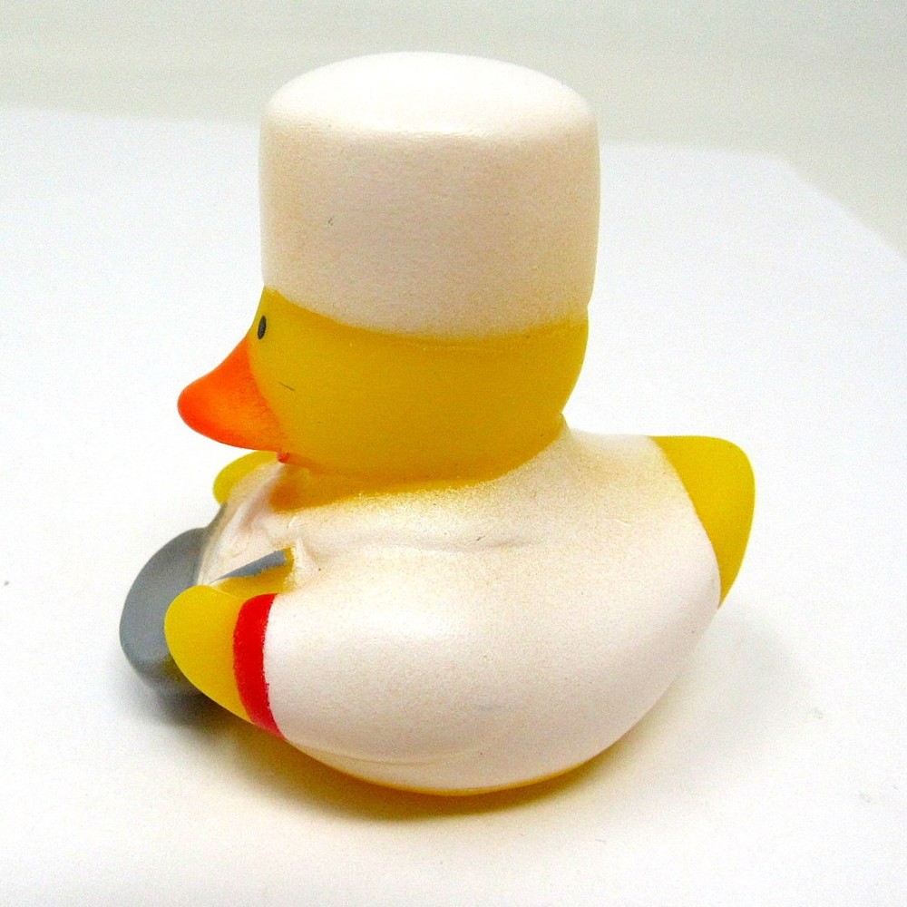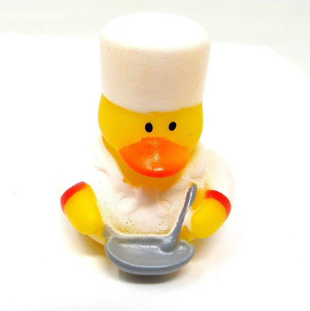Chef Rubber Duck, New, 2", Holding Bowl & Spoon, Red Trim, Tall Hat, Gourmet Cook, Squirter , US Seller. Use as gift tie, party favor, float in hot tub, stocking stuffer or gift basket Condition - New. Perfect condition. Never used. There may be slight paint smudges from manufacturing. Not Recommended - for Children Under 3 Years of Age Actual Size - 2 " tall Penny is not included Squirter - There is a hole in the beak. Not guaranteed to float upright. All our packages ship with tracking. Stored & Ships from our smoke free - pet free home If there is a problem please contact us we try to respond within a few hours. Thanks for looking and please visit us again, very soon. FREE scheduling, supersized images and templates. Get Vendio Sales Manager. Over 100,000,000 served. Get FREE counters from Vendio today!