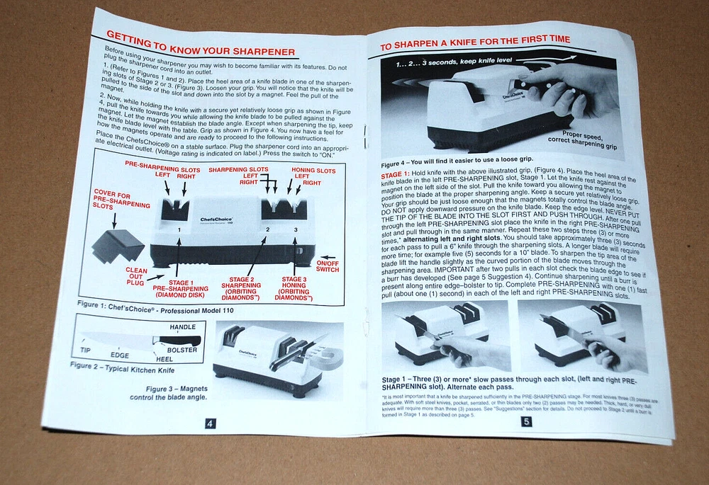 Chefs Choice Professional Electric Knife Sharpener Diamond Hone Model 110 Manual