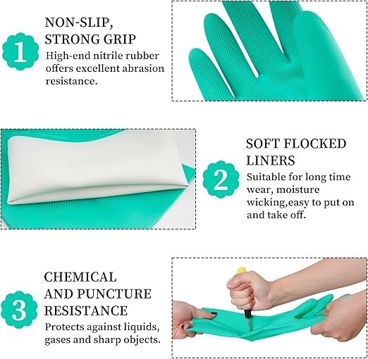 Chemical Resistant Nitrile Gloves Long Rubber Gloves Drains Household Cleaning Description Suitable for outdoor projects and landscaping, these long rubber gloves are built to withstand strong adhesive removal and effectively prevent chemical exposure. Experience superior protection with pond gloves, perfect for handling chemicals and arduous cleaning projects. These industrial rubber gloves are designed for both men and women. Use latex rubber-free and odor-resistant flock lining to offer a comfortable fit for big/small hands and sensitive skin. Enjoy the perfect durability and robustness of these rubber gauntlets, as high-end nitrile material provides a higher level of protection against liquids, gases, and sharp objects. Stay safe and clean with these extra-long cleaning gloves, suitable for various chemical applications and perfect for both indoor and outdoor use. Built to last, long arm waterproof gloves are highly durable and resistant to strong adhesive removal, providing long-lasting and cost-effective performance. Ensure your safety while handling chemicals with these high-quality industrial rubber gloves, designed to effectively handle chemicals and provide reliable protection.
