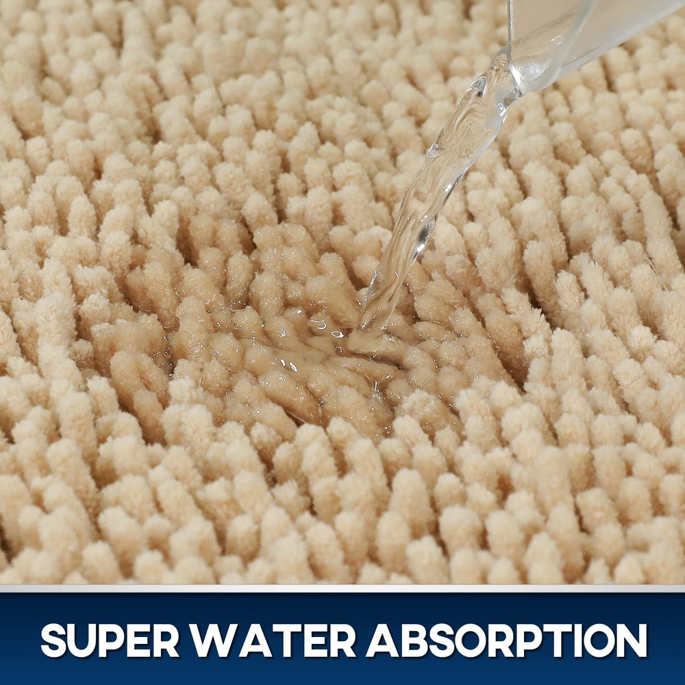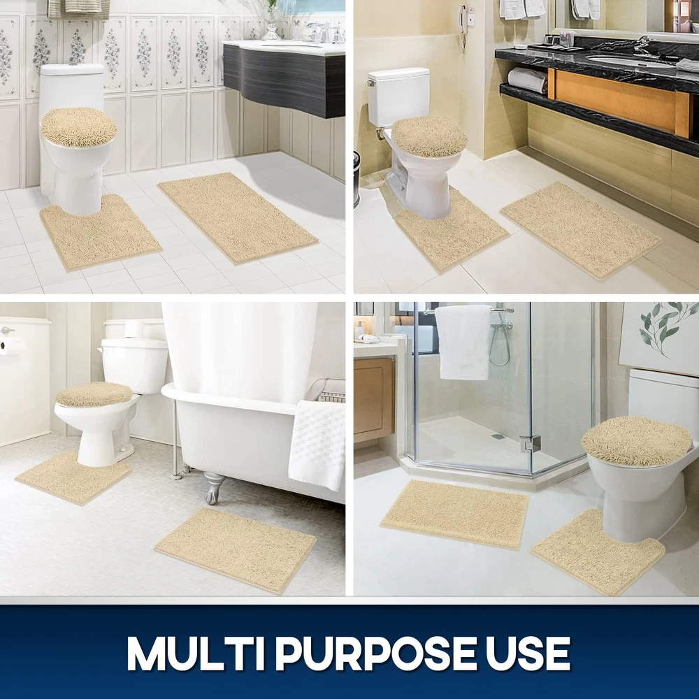 Bathroom Rug Set with U-Shaped Mat, Ultra Soft Non Slip Bath Rug and Absorbent Chenille Bath Mat, Machine Washable Quick Dry Rugs, Plush Bath Mats for Bathroom, Tub, Shower Bathroom Rug Sets 3 Piece: Made from chenille material, the 32"x20" bath rug, 20"x20" U-shape contoured keep your toes warm on the cold floor, and the length from 17.5 to 21 inches and the width from 15 to 19 inches toilet lid cover with strong elastic edges bring the cover kind of adjustability. It offers protection to your toilet lid from scratches. Generous size, fits most standard toilet lids. Comfortable and Soft: Three-layer design, chenille suede + high-quality sponge layer + non-slip PVC backing, which is well made care for your feet! Our soft and absorbent bath mats have thousands of individual microfiber shags about 1" long, luxurious suede that soothes tired feet and toes. Reusable and Anti-slip: We use a machine washable PVC backing for long lasting use, make sure you don’t slip on your tile with our slip safe bath mat rug. PVC backing has strong skid resistance and stays in place. It is suggested that the carpet should be placed on the dry bathroom floor to maximize the anti-skid effect of the carpet. Super Water Absorption: The chenille design increases surface area to increase absorbency. It absorbs quickly, which keeps your bathroom pleasingly dry. Thick chenille fabric helps save your floors from dripping water while you’re stepping out of the bath, shower or getting ready in front of the sink. Water absorption will reach saturation after several uses. You should wash and dry them to keep your comfort. Machine Wash: Regular cleaning is recommended. Easy to clean, machine wash or hand wash can be. Wash with neutral soap or detergent in water that does not exceed 40 degrees Celsius, wash separately with fabrics of different colors, do not bleach, and dry at low temperatures. The digital images we display have the most accurate color possible.