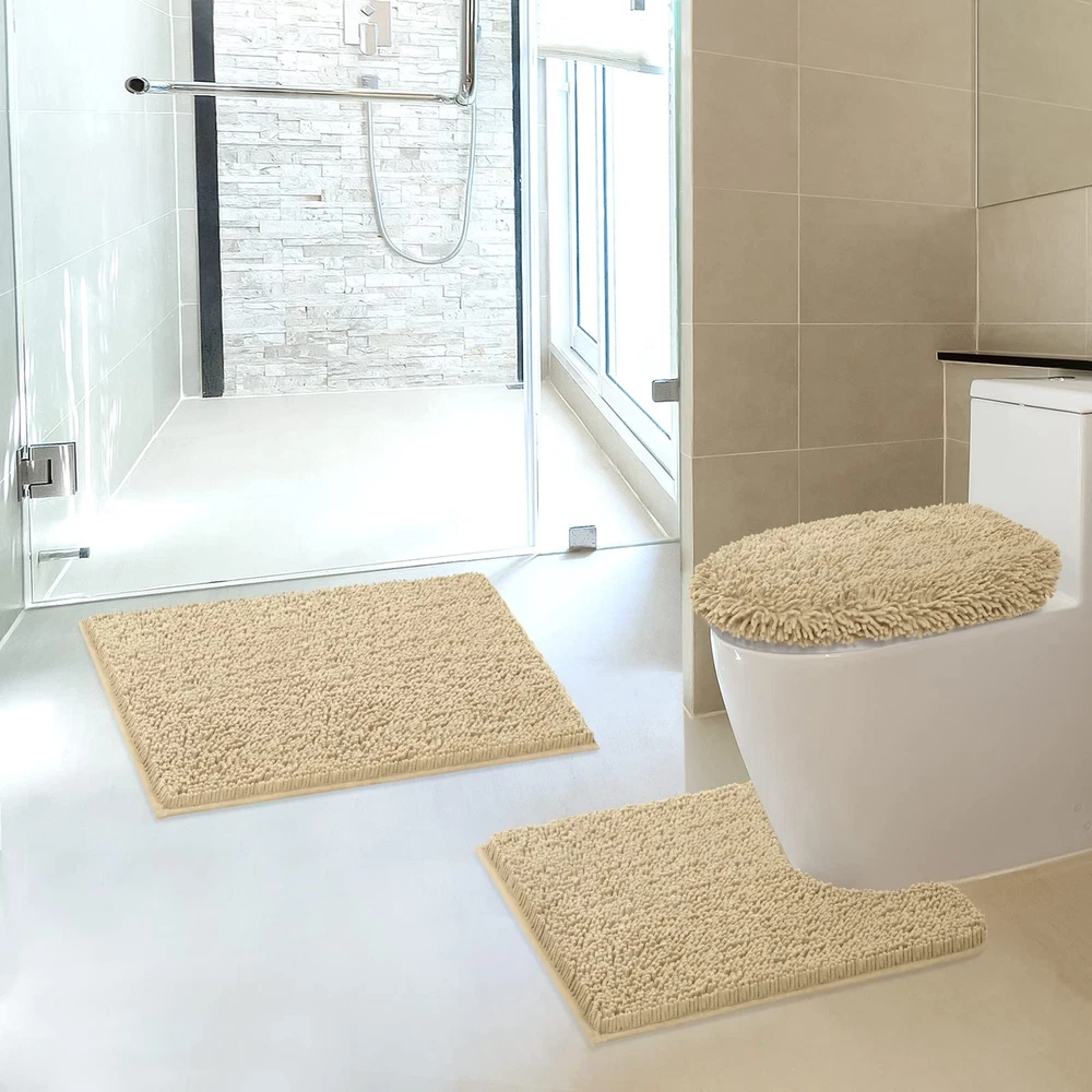 3-Piece Bathroom Rug Set with U-Shaped Toilet Mat & Absorbent Shower Rugs