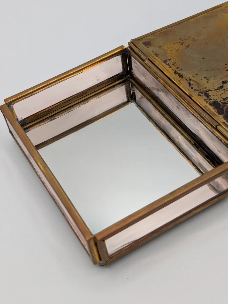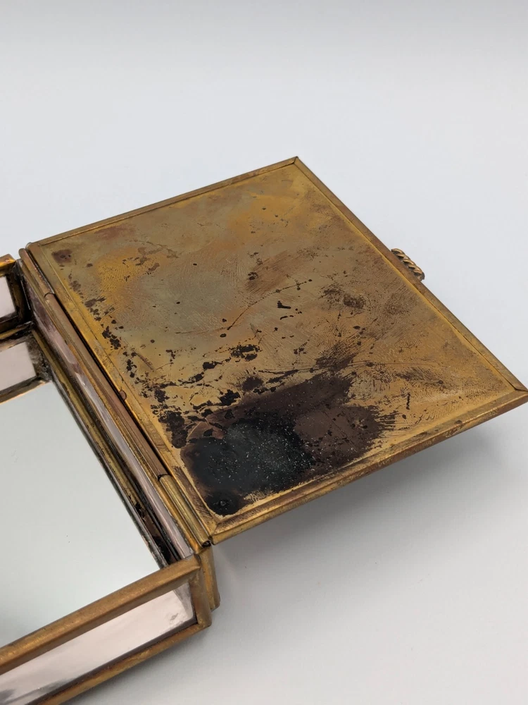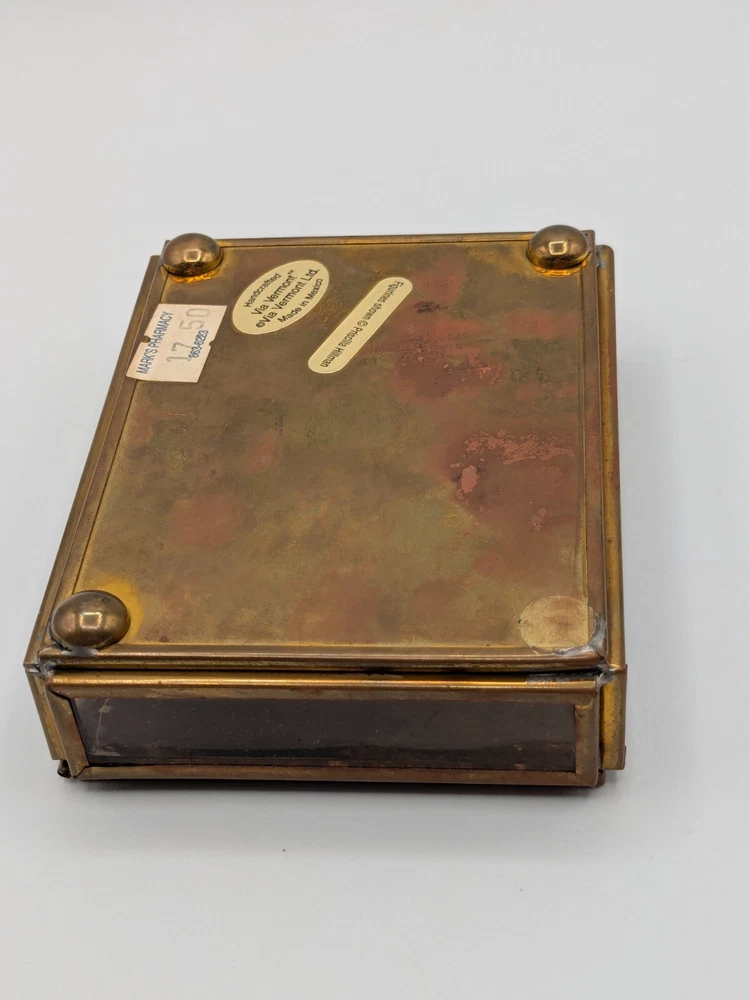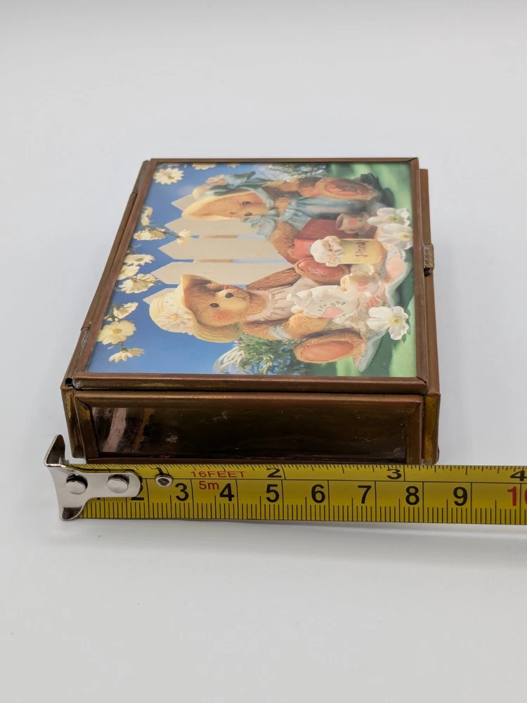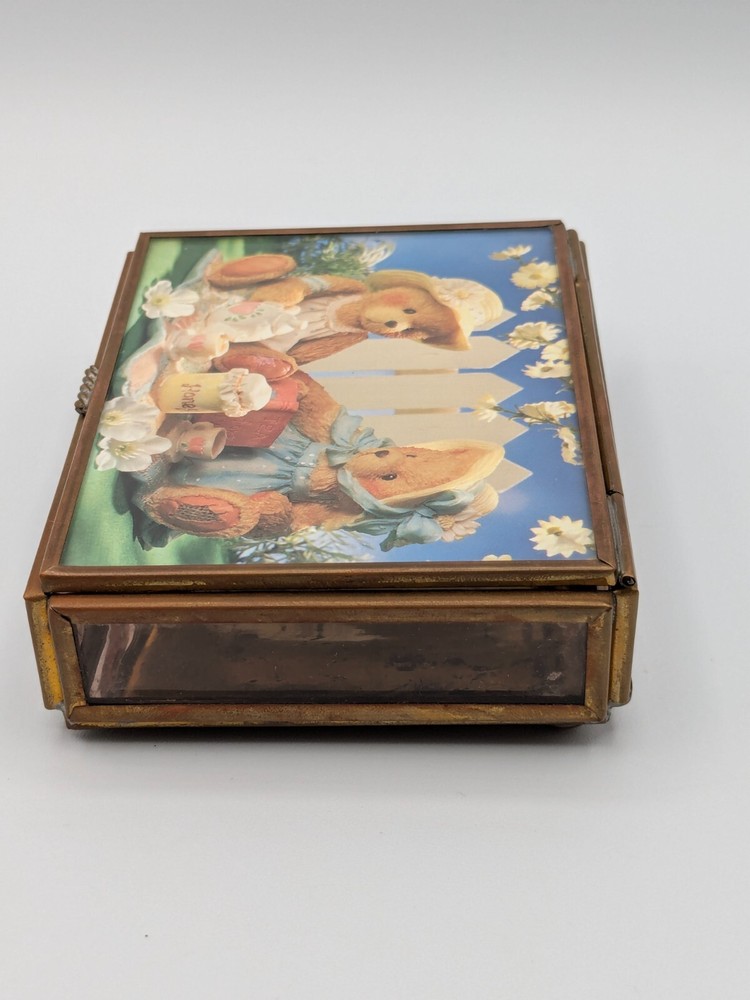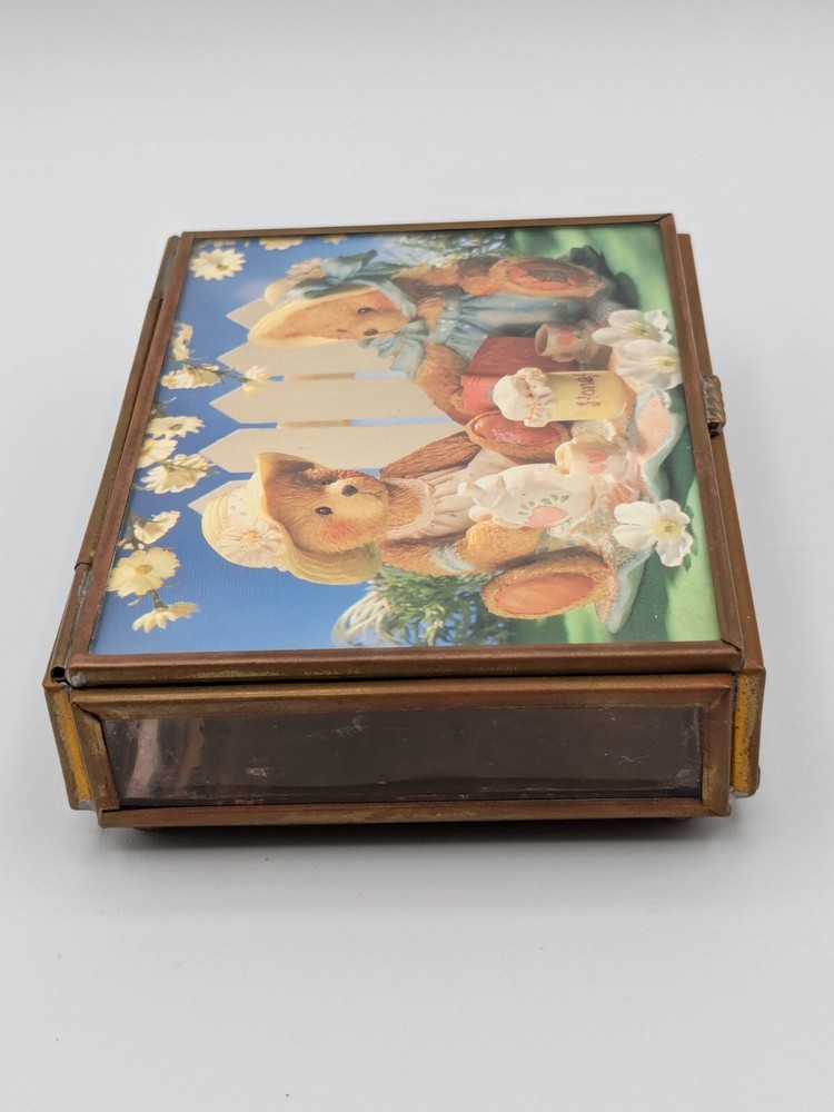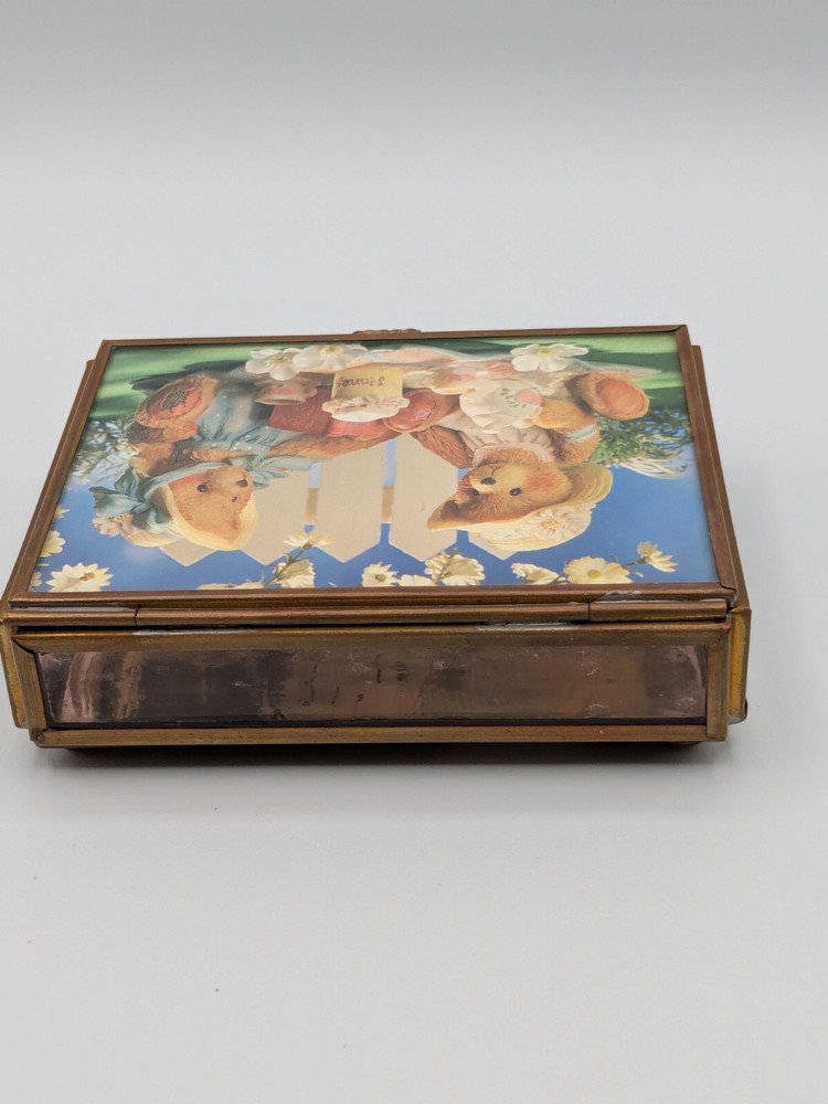 Cherished Teddies Brass Trinket Box with Glass Mirror 4x3x1