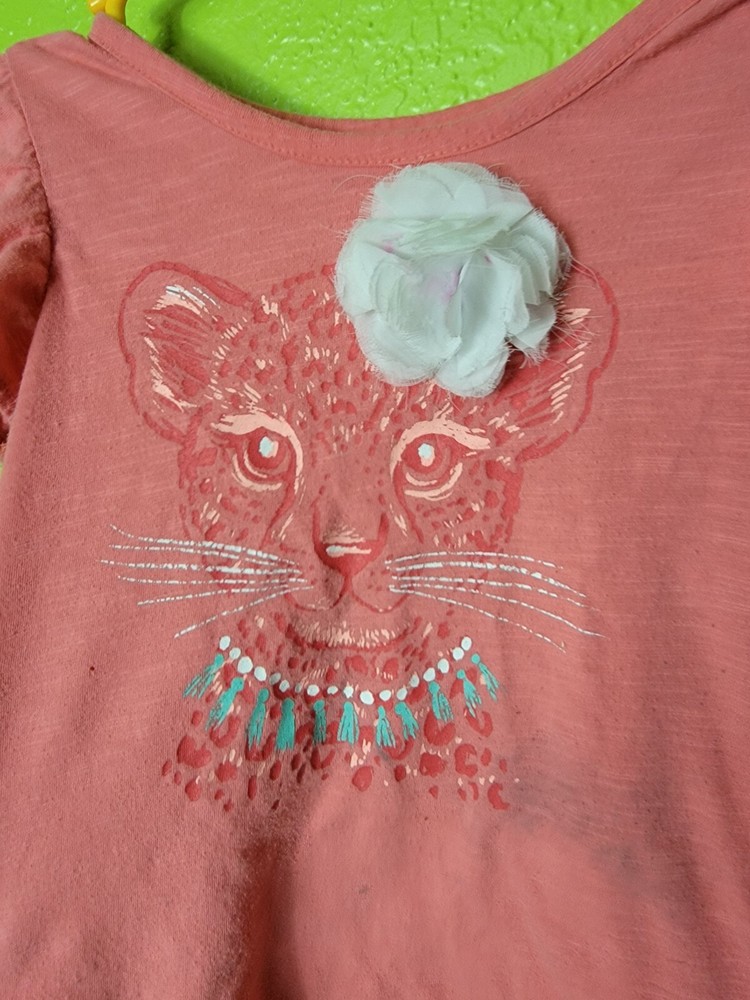 Cherokee 5t Toddler Girls Shirt Top Tiger Leopard Cat Pink