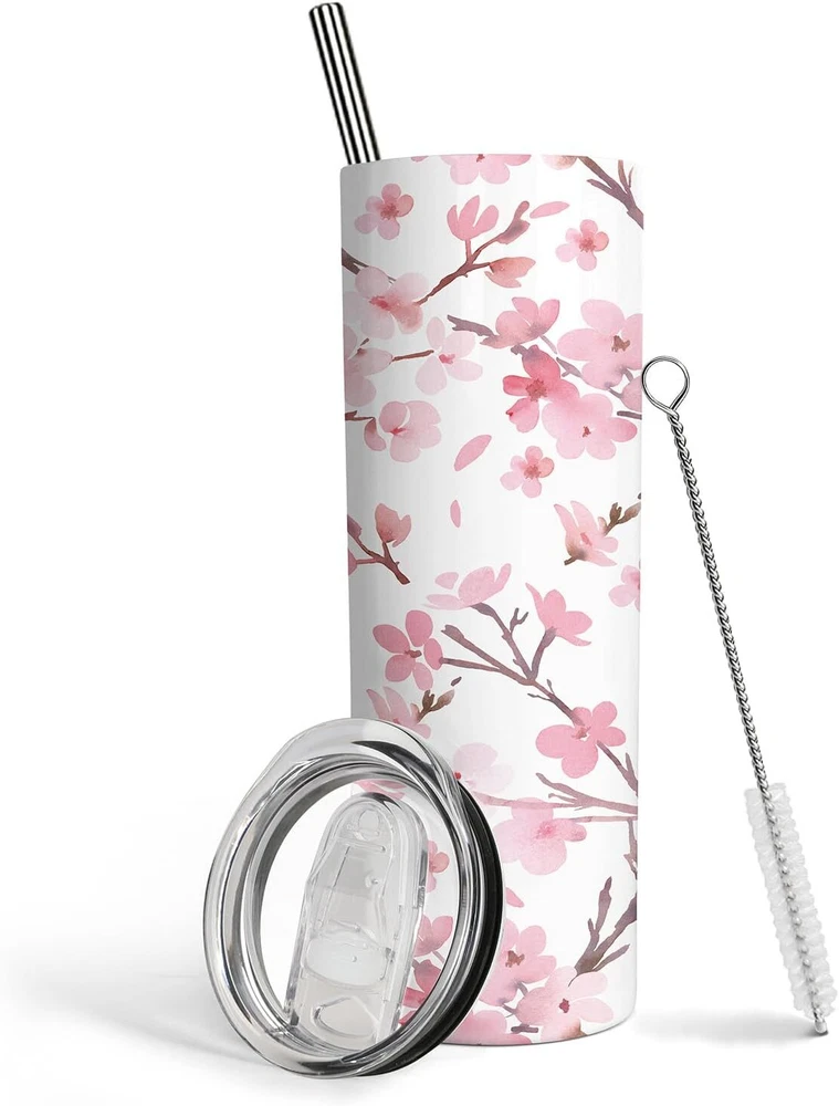 ��Tumbler With Lid and Straw��Our 20oz Skinny Tumbler comes with a BPA Free spill-proof easy-close slider lid, a reusable mental straw and a straw brush for easy cleaning of the straw. This insulated tumbler is made of food-grade 18/8 lightweight stainless steel, double walled and vacuum insulated, able to keep hot drinks hot all morning long, cold drinks cold all throughout the day. ��Good Quality Cups��Our coffee mugs use eco-friendly material which won''t retain tastes or odors. This water bottle is rust resistant, shatterproof, and durable. Our insulated tumbler is light, easy to hold, portable, and compact to fit normal sized cup holders and most car holders. ��Designed for Everyday Use��Our tumblers are ideal for any cold or hot drink like water, coffee, juice, milk, wine, champagne, cocktail, smoothie, milkshake, beer, soda, lemonade, ice cream, and other beverage. These insulated water bottles can be used at home, in the office, outdoor parties and events like sports, traveling, camping and driving, right for office workers, drivers, students, teachers, BBQ experts, party favors, sailors, etc. ��Perfect Gifts��The tumbler can be a ideal gift for Holiday, Birthday, Christmas, Valentine��s Day, Girl��s Trip, Mother��s Day, moving away, house-warming, promotion, new job, or for every day and for no reason at all. This skinny tumbler is an ideal gift for women, girls, kids, your bride, wife, friend. ��Lovely Pattern��Our coffee travel mug is full-frame printed with high quality pattern. Coated with BPA-free material, the water bottle won''t fade after cleaning and washing, good for long term use. For best results, hand wash with soap, water and a scratch-free sponge.