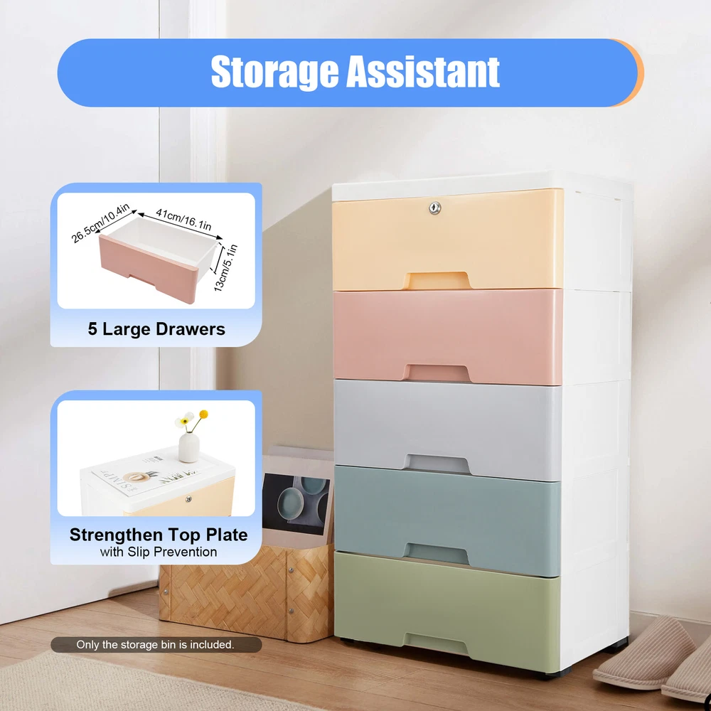 Chest of 5 Drawers Drawer Tower Dresser Clothes Storage Racks Bedroom Plastic
