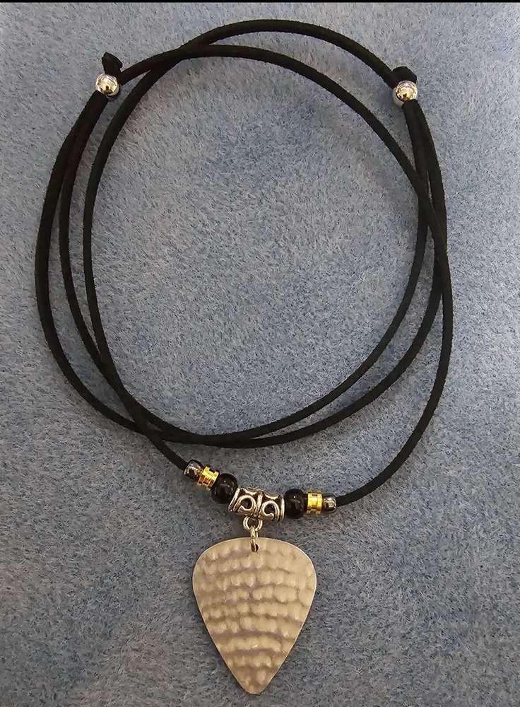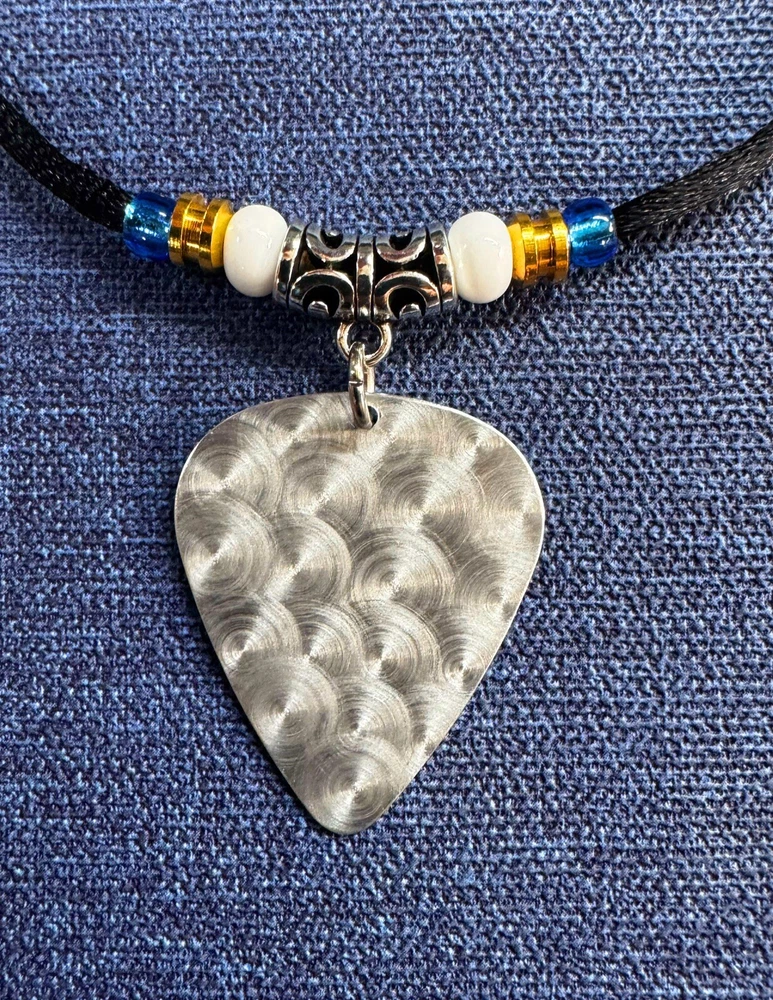 Add a touch of rock and roll to your outfit with this unique aluminum guitar pick necklace. These are made by hand from high quality aluminum and the image is baked on with high heat. They are incredibly durable and the image is clear and high gloss, much like the paint job on your car. The necklace is made from paracord and is super strong and fully adjustable to be as long or short as you prefer. These are made to order so item may vary slightly from photo. if you would prefer different color beads or necklace I have black and dark brown available for the necklace and several options for the beads. I can do any image on the pick so if you have your own image or idea I can do that also. Just send me a message and I'll make it happen.