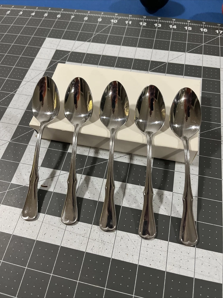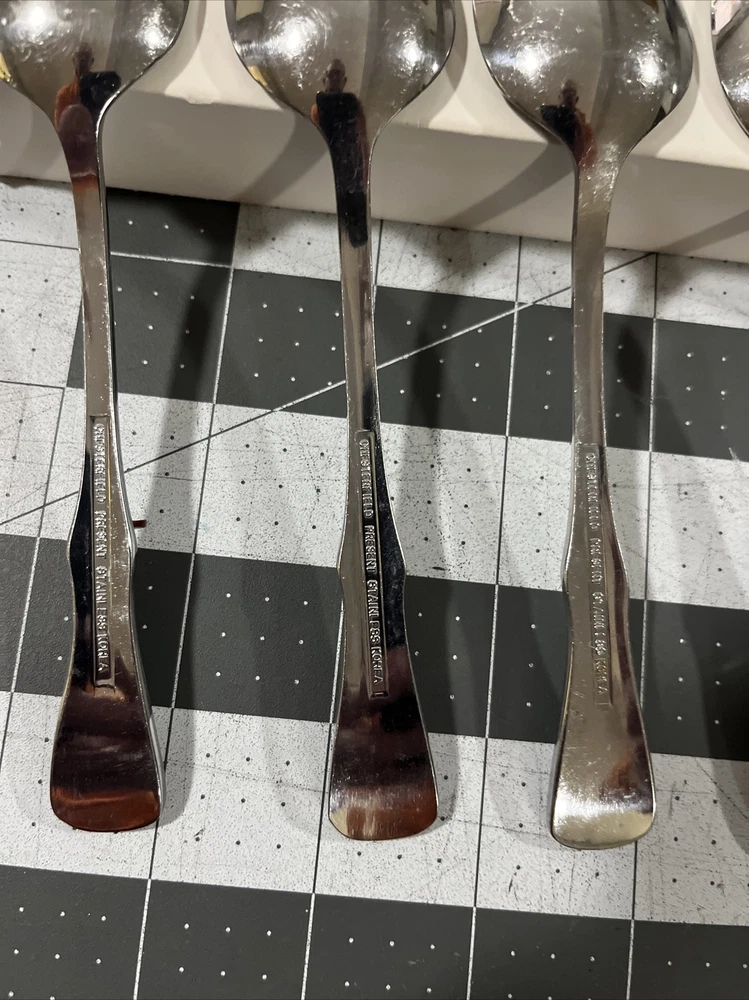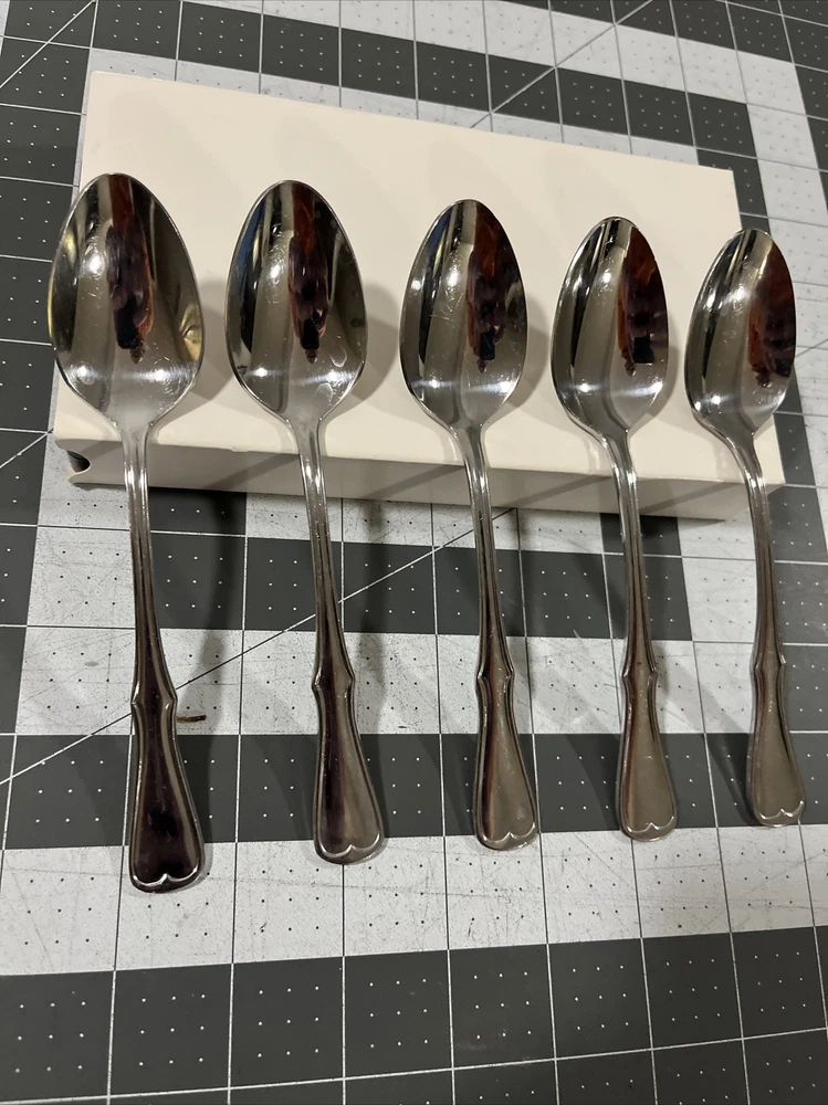 Chesterfield By Present (5) Teaspoons Stainless Flatware Fiddle Vintage