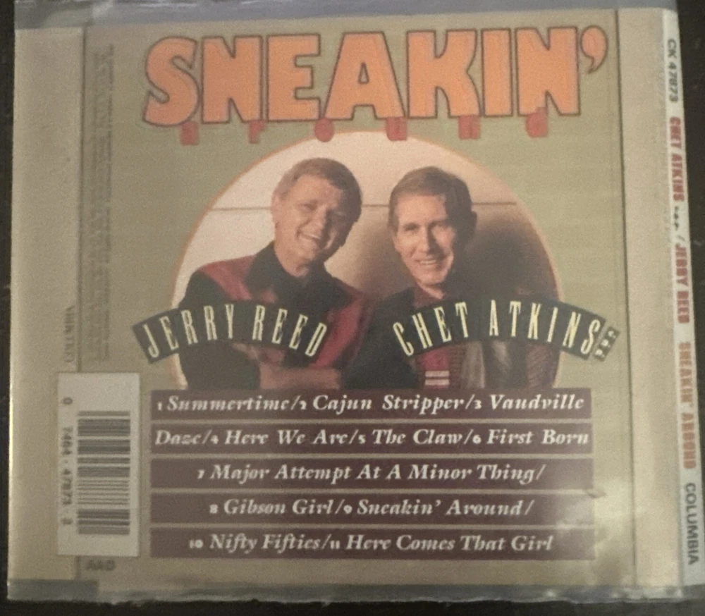 This Chet Atkins ‘Sneakin' Around’ CD came from my father’s private music collection. The CD has moderate signs of handling wear, there is moderate scratching but it’s nothing that impacts play or sound quality. The inlay has aged slightly but has zero condition issues. Overall it’s very good condition and a fine buy at $5.