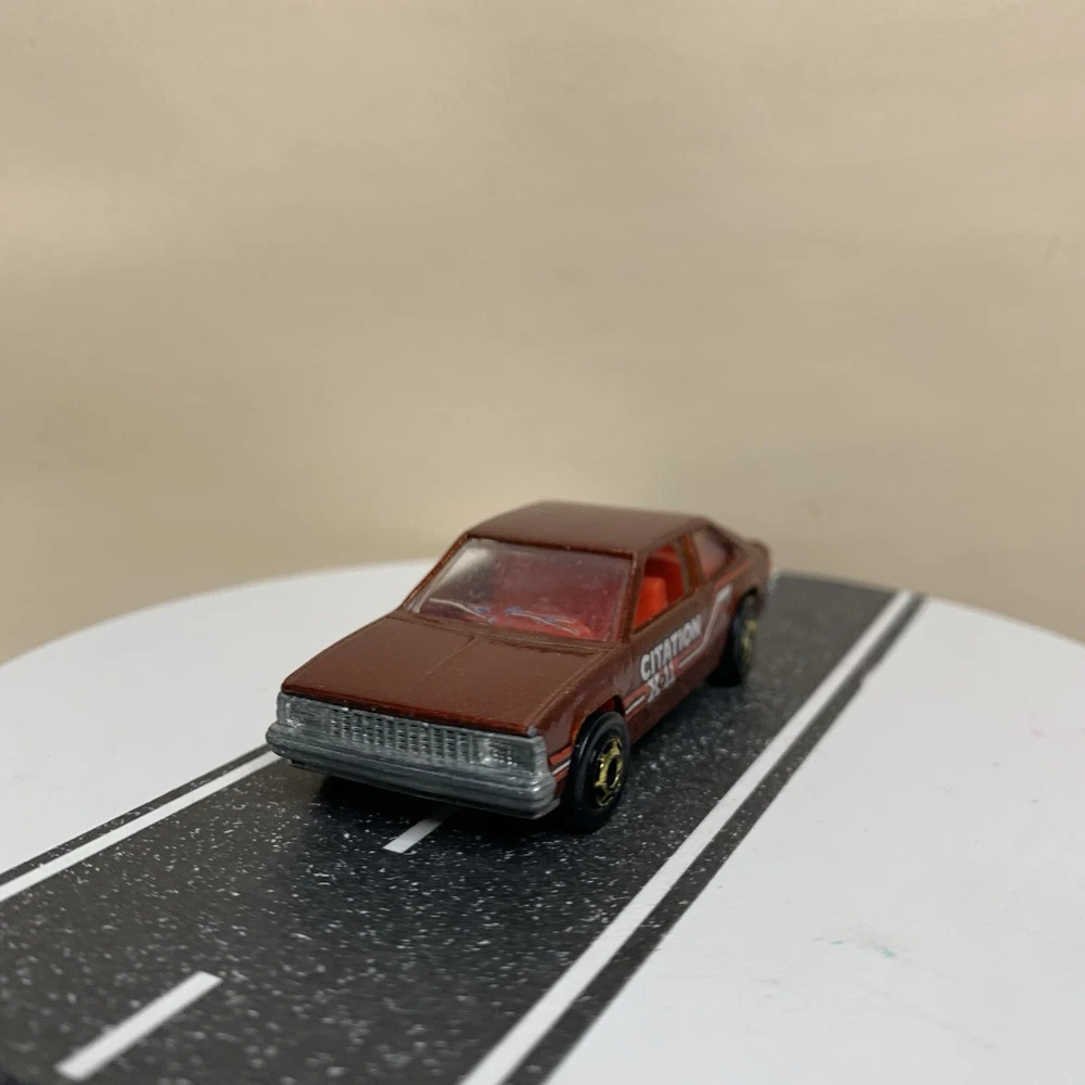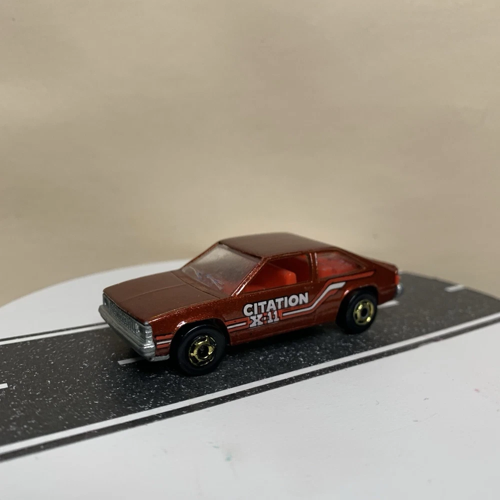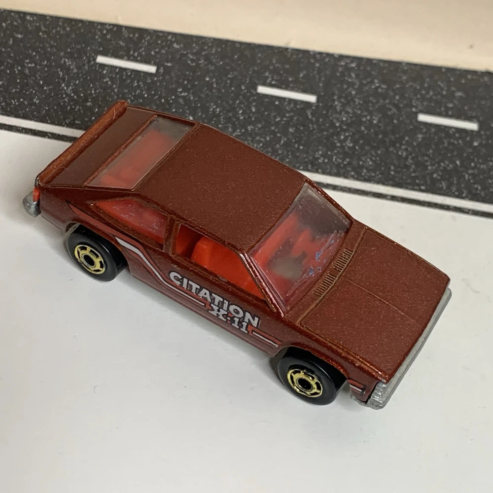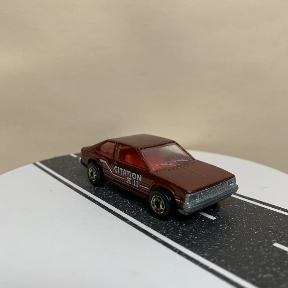 gtin13:Does not applyVehicle Year:1980Brand:Hot WheelsModel:Chevy Citation X-11Estado del artículo:UsadoVehicle Make:CHEVY CITATIONCountry/Region of Manufacture:MalaysiaSeries:hot wheelsTheme:hot wheelsColor:BrownYear of Manufacture:1980UPC:Does not applyScale:1/64Material:DiecastVehicle Type:CarGender:Boys & Girls
