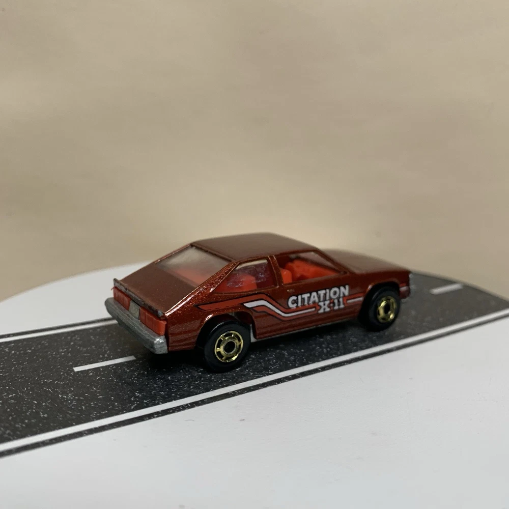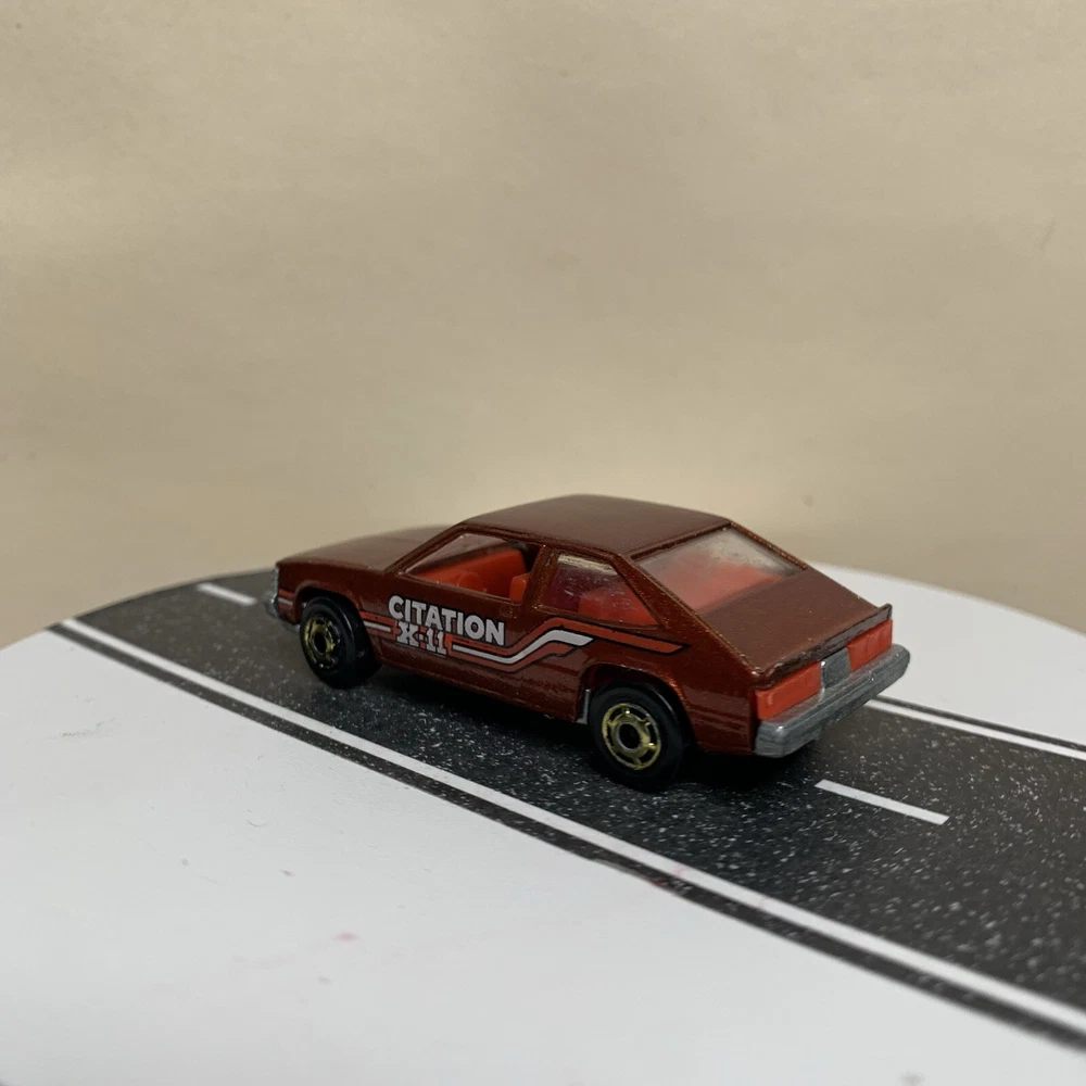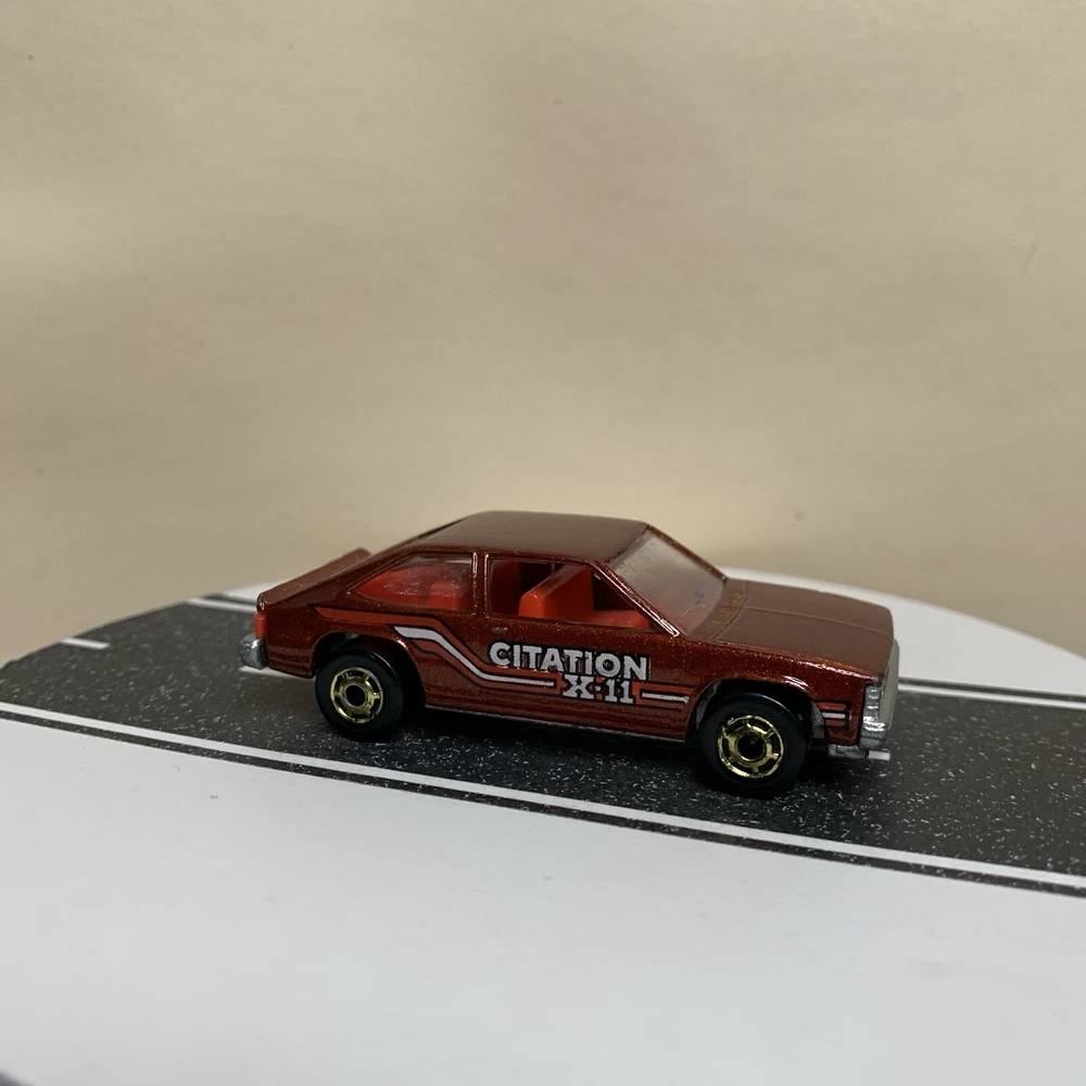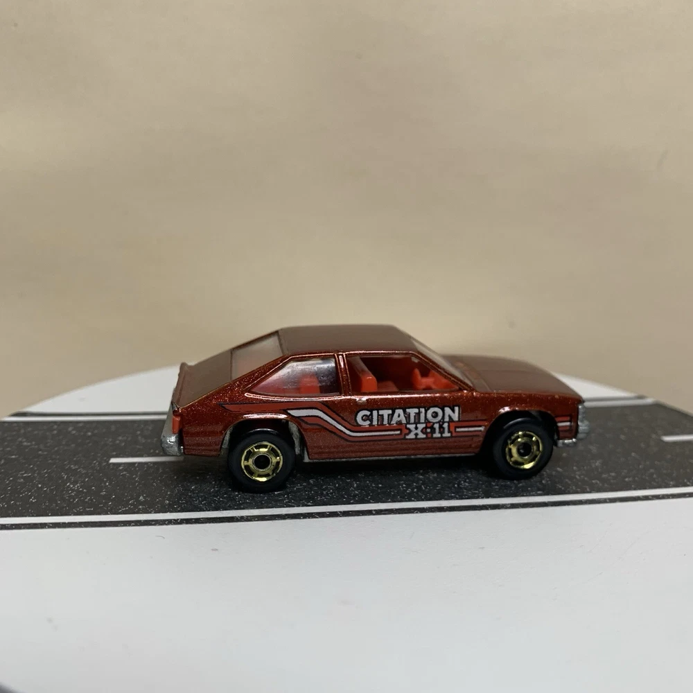 gtin13:Does not applyVehicle Year:1980Brand:Hot WheelsModel:Chevy Citation X-11Estado del artículo:UsadoVehicle Make:CHEVY CITATIONCountry/Region of Manufacture:MalaysiaSeries:hot wheelsTheme:hot wheelsColor:BrownYear of Manufacture:1980UPC:Does not applyScale:1/64Material:DiecastVehicle Type:CarGender:Boys & Girls
