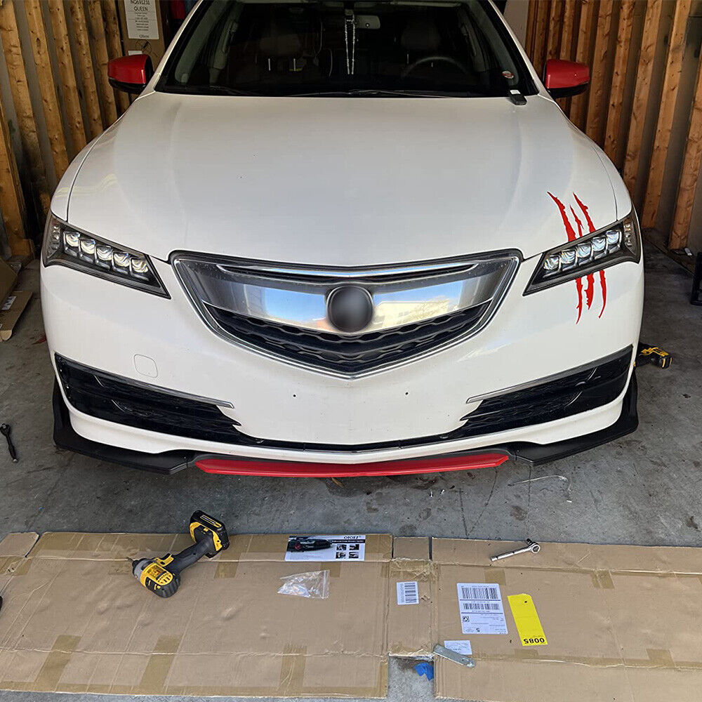 Feature: Made of Updated durable and sturdy ABS plastic, adding stiffeners, no deformation in long-term use. More longer and wider than others. Provide an elegant and personalized appearance. Prevent the car from being scraped and improve the level of the decoration of the car. Come with screws, More convenient installation and stable installation. This is a set(4 pieces) front bumper cover lip front spoiler Instruction Included, Professional Installation Is Highly Recommended.* Specification: Type:Front Bumper Lip Body Kit Spoiler Material:ABS Color:Black+Red Weight: about 3.5 lbs Placement on Vehicle: Front;Lower Package Included: ◇1 x Set Of Front Bumper Cover Lip Front Spoiler(3 Pieces) ◇1 x Bag Of screws On Jan 16, 2025 at 11:54:53 PST, seller added the following information: