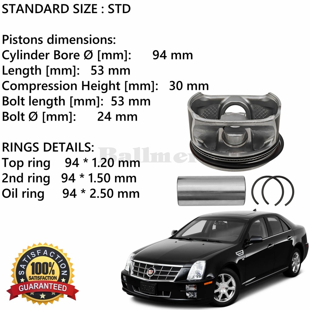 STANDARD SIZE : STD Pistons dimensions: Cylinder Bore Ø [mm]: 94 mm Length [mm]: 53 mm Compression Height [mm]: 30 mm Bolt length [mm]: 53 mm Bolt Ø [mm]: 24 mm RINGS DETAILS: Top ring 94 * 1.20 mm 2nd ring 94 * 1.50 mm Oil ring 94 * 2.50 mm Piston process: Aluminum natural color + Graphite coating Compatible Models: 3.6L Engine Code : LLT 2008-2011 Cadillac STS 3.6L 2008-2011 Cadillac CTS 3.6L 2009-2010 Saturn Outlook 3.6L 2009-2015 GMC Acadia 3.6L 2009-2015 Chevrolet Traverse 3.6L 2010-2011 Chevrolet Camaro 3.6L 2009-2014 Buick Enclave 3.6L 2010-2011 Buick LaCrosse 3.6L Home Payment Shipping Return Policy About Us Contact Us Feedback Title Other Catalytic Converter Shock Absorbers Struts Other Fuel Pump Pistons & Ring Kit For Chevrolet Traverse Buick Enclave 3.6L 12616972+12616971 3.6L STD Pistons & Ring Kit For Buick Enclave Cadillac Chevrolet Traverse LLT STANDARD SIZE : STD Pistons dimensions: Cylinder Bore Ø [mm]: 94 mm Length [mm]: 53 mm Compression Height [mm]: 30 mm Bolt length [mm]: 53 mm Bolt Ø [mm]: 24 mm RINGS DETAILS: Top ring 94 * 1.20 mm 2nd ring 94 * 1.50 mm Oil ring 94 * 2.50 mm Piston process: Aluminum natural color + Graphite coating Compatible Models: 3.6L Engine Code : LLT 2008-2011 Cadillac STS 3.6L 2008-2011 Cadillac CTS 3.6L 2009-2010 Saturn Outlook 3.6L 2009-2015 GMC Acadia 3.6L 2009-2015 Chevrolet Traverse 3.6L 2010-2011 Chevrolet Camaro 3.6L 2009-2014 Buick Enclave 3.6L 2010-2011 Buick LaCrosse 3.6L Features: Precision-engineered to meet OEM specifications for optimal performance and reliability. Compatible with Chevrolet Camaro 3.6L , Compatible with Cadillac CTS STS 2.0 V6, ensuring a perfect fit for your vehicle. Constructed from high-quality materials for enhanced durability and longevity under extreme conditions. Easy installation process, making it a convenient choice for both professional mechanics and DIY enthusiasts. Designed to improve engine efficiency and power output, enhancing your vehicle's overall performance. OE Number: 12616971, 12616972 Package included: 1x Pistons & Ring Kit Terms of sales Delivery details Payment About us Contact us Terms of sales If you are not sure about the compatibility, or you are looking for other car parts, just contact us. We are happy to offer any help. Bellow information will help: VIN(Vehicle Identification Number), detailed car model, part number and photos of the parts. as the information in the " vehicle compatible chart" section above is generated by eBay Motors and not from us. 📣30-day window for returns and exchanges for reason other than defect. 📣Standard 1 year warranty on all parts except as noted. 📣 We do not warranty for improper installation or usage after time of purchase. 📣 Please make sure your address and contact information is accurate and correct. 📣 Except the product costs, international buyers may need to pay additional import taxes to local customs. Our prices do NOT include taxes. Delivery details 👉Domestic orders are usually shipped within 2 working days. Delivery is between 2-5 business days. (except holidays and weekends). Sometimes the carrier may not update the tracking in time, so we arranged staff to follow up the tracking status of all orders. If there is any abnormality, we will provide solutions to guarantee the rights and interests of customers. (Domestic orders will be shipped FREE of charge via UPS/ FedEx/ USPS at our discretion.) 👉Outside the United States, orders will be shipped within 3 working days and delivered within 2-7 working days. Apart from the product cost, international buyers may have to pay additional import duties to the local customs. Our price does not include tax. (International orders will be shipped via DHL, FedEx, UPS) Payment Please use the eBay checkout system when paying for your order. Immediate payment is required for all orders. About us We are a leading auto parts supplier with our own supply chain system. Our products are produced according to the original factory standard, with high quality and a competitive price, and the warranty period is one year. Our Advantage: Expert Guidance and Support: Our team of knowledgeable and experienced professionals is here to provide expert guidance and support. Exceptional Quality Assurance: Quality is our top priority. All our auto parts undergo rigorous testing and quality assurance processes to meet or exceed industry standards. Competitive Pricing and Value : We understand the importance of competitive pricing without compromising on quality. Our commitment is to provide customers with value for their money, offering affordable auto parts that don't sacrifice performance or reliability. Specialized in automotive shock absorber and catalytic converter parts, fuel pump, Transfer Case, ignitioncoil, Vacuum Pump, Repair kit, etc. Contact us ❤️ Communication is the best way to solve the problem. If you have any problems after purchasing, please contact us in time, before opening return or case 🔔Please contact us before committing to buy if you have any questions about the applicability, warranty or conditions of the product. ⚠️Notes: Due to the time difference, we may not be able to reply in time. Please be patient. Please don't worry. We will definitely reply your email within 24 hours. Main Brand