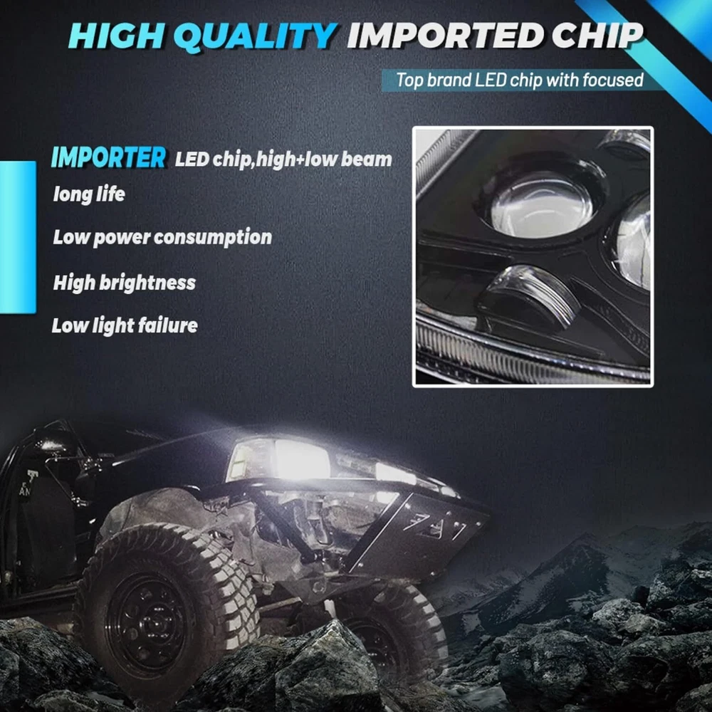 Package Included: 2PCS 5X7 / 7X6 Inch LED Headlights 2PCS H4-9003 Wiring Sockets Description: ▲Super Bright: Adopting high-grade LED chips, high definition projector lenses and high transmittance PC cover. Our LED headlight can provide a supper bright, driving illumination with over 6000K color temperature, up to 6000lm brightness for high beam and 4500lm brightness for low beam. ▲ 5D Lens design With DRL Fuction, provide super bright during driving on night and meantime improve driving safety. ▲DOT Approval, IP68 waterproof, shockproof, anti-corrosion. Headlight back with exhaust hole avoids inside fog/moisture build-up, durable and long lifespan. ▲Easy Installation, Plug & Play: Manufactured in accordance with the original headlight. Usually in 20 minutes or less,built-in anti-flicker hardness, no need extra decoder anymore. Come with H4 and H13 Adapter Wire. Specification: Color Temperature: 6000K pure white light Power: 100W / PC, 200W / Set Luminous Flux: 8000LM/high beam,4500LM/low beam Waterproof Grade: IP68 Voltage: 9-32V DC Housing: Aluminum Alloy Lens material: PC Lens Life Span: 80,000 hours Working temperature: -40~ 85°C Compatibility: Truck, Offroad, 4WD, Tractor, ATV, Boat, UTE Measurement: 7.87"(Length)x5.63"(Width)x3.14"(Depth),will fit headlight with similar size Fitment: Fit but not limited: Any other car H6054 H6014 H6054LL 69822 6052 6053 with 5"x7" OR 7"x6" Rectangular Headlight Fit For any Vehicle with 5x7 inches (also known as 7x6) Headlights ,such as: Fit For Jeep Wrangler YJ 1987-1995 Fit For Jeep Cherokee XJ 1984-2001 Fit For Jeep Wrangler MJ Comanche 1986-1992 Fit For GMC Savana 3500 1998-2002, 2004, 2007, 2009-2012 Fit For GMC Savana 2500 1998-2001, 2004, 2006, 2008, 2010-2012 Fit For GMC Savana 1500 1998-2001, 2003, 2005, 2007, 2009-2012 Fit For GMC Safari 1998-2002, 2004, 2005 Fit For GMC K3500 1997-2000 Fit For GMC K2500 Suburban 1997-1999 Fit For GMC K2500 1997-2000 Fit For GMC K1500 Suburban 1997-1999 Fit For GMC K1500 1997-1999 Fit For GMC C2500 Suburban 1997-1999 Fit For GMC C2500 1997-2000 Fit For GMC C1500 Suburban 1997-1999 Fit For GMC C1500 1997-1999 Fit For Ford F-550 Super Duty, Ford F-450 Super Duty, Ford F-350 Super Duty, Fit For Ford F-250 Super Duty, Ford F-250, Ford F-150, Ford E-450 Super Duty, Fit For Ford E-350 Super Duty, Ford E-350 Econoline Club Wagon, Ford E-350 Econoline Fit For Ford E-350 Club Wagon, Ford E-250, Ford E-150 Econoline Club Wagon, Fit For Ford E-150 Econoline, Ford E-150 Fit For Chevrolet Express 3500, Chevrolet Express 2500,Chevrolet Express 1500, Chevrolet Astro Fit For Chevy S10 Pickup 82-94