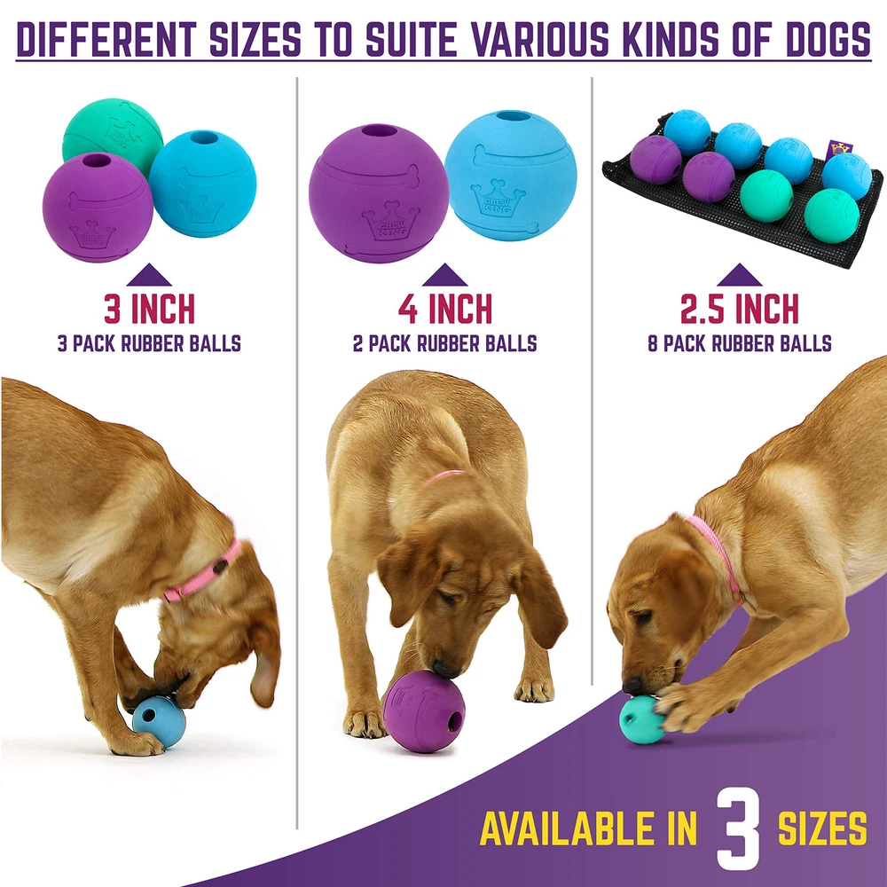 Dogs are our most loyal friends, so it’s only fitting to treat them like royalty every now and then. Which is why vet-recommended Chew King dog toys are made using only thoroughly tested, pet-safe materials like natural rubber, tough cotton rope. They’re durable, fun and, with the right size, are designed to outlast even your super Chomper or fetch machine’s most vigorous play. Plus there’s a fun toy for every active part of your pup’s day – fetching, treating or playing. Try one today and you just might say, “Hail to the King! ” warning: we design our toys to be Durable, but no dog toy is indestructible. You know your pet best: if your dog is a heavy chewer, consider A larger-sized toy. For safety, you should always supervise while your dog plays with this toy. Keep out of reach of children. Store Our of pet’s reach when not in use. Remove all packaging and dispose or properly. Parts of this item can be a chocking hazard to pets and children If removed from the toy. If any becomes loose, detached, or destroyed, remove the toy and discard immediately. Ditch wet, unpleasant tennis balls for a triple-pack of natural rubber fetching fun Tuck a treat inside and drive your dog wild Durable, natural, no chemical smell rubber retains shape, bounces well, and stands up to tough chew Safety air vent protects your pup, keeps happy tongues from getting stuck Available in two sizes – Medium 2.5” diameter balls or Large 3” diameter balls