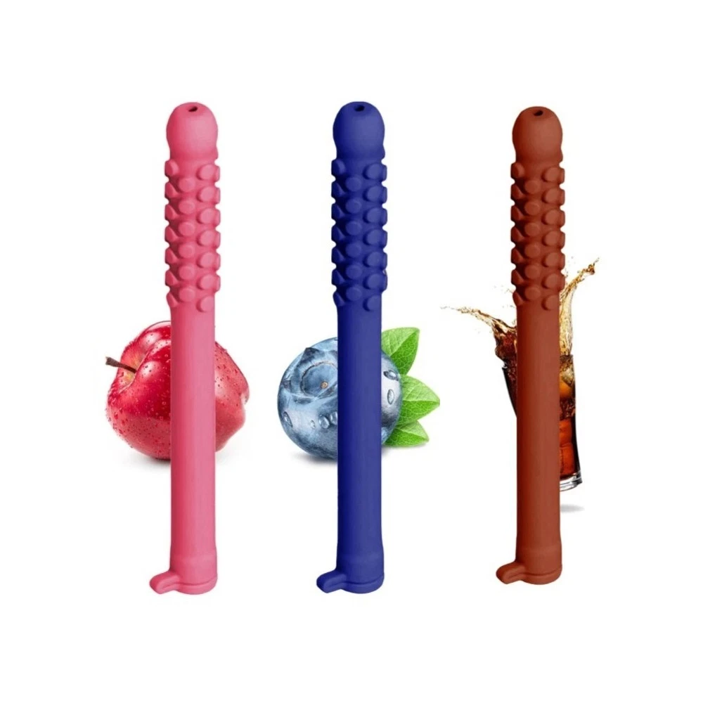 Chewable Essential Oil Breath Stick Chewable Breather Stick w/ Essential Oil Features: Eco-Friendly & Reusable: Crafted from food-grade silicone, this chewable breathers is soft, flexible, and gentle on teeth. Simply replace the refill core after each use to instantly renew your breath stick. Featuring textured particles for enhanced sensory stimulation, this flexible chew stick helps manage anxiety and oral fixation, Breaking Oral Habits: The newly designed chewable silicone stick serves as the ideal alternative for those quitting smoking, offering a satisfying mouth-hand interaction ritual and fresh breath sensation. Free from harmful ingredients, it prioritizes health concerns. Suitable for All Occasions: Highly recommended for those with oral habits like nail-biting or pen-chewing! Keeping your mouth occupied helps distract your mind from tension. Use it during stressful situations for instant relief—smoke-free and suitable for any occasion. Chewable Breather for Quitting Smoking: These innovative chewable breath sticks are designed to help you quit smoking by providing a satisfying oral substitute, reducing cravings and improving breath freshness with essential oils. Fresh Fruit-Flavored Chew Stick: Enjoy a burst of natural fruit flavor while relieving stress and anxiety, perfect for office workers and commuters seeking a discreet, pocket-sized solution to nervous habits. Pocket-Sized Essential Oil Breather: Compact and convenient, this chewable essential oil breath stick freshens breath on the go while promoting relaxation, making it a must-have for busy professionals and travelers. Ideal for Improving Nervous Habits: Designed to curb smoking and anxiety, these chewable breath sticks offer a healthy alternative to nervous chewing, perfect for commuters, office workers, and stress relief. Conveniently portable: Compact and lightweight, easily fits in your pocket. Carry it anywhere for on-the-go use! Whether at work, driving, or socializing, it provides instant satisfaction whenever needed. Specifications: Enduring : This chewable essential oil breath stick is safe and enduring , widely applicable to people . Product Name: Chewable Essential Oil Breath Stick Material: Silicone Flavor : Blueberry, Apple, Cola, Orange, Coffee, Lemon, Soda, Watermelon, Mint, Strawberry Size: 14*2cm Package Include: 1//2/3/4PCS Chewable Essential Oil Breath Stick Note: Due to the screen lighting effect, the actual color of the product may be slightly different. Due to manual measurement, please allow size error.