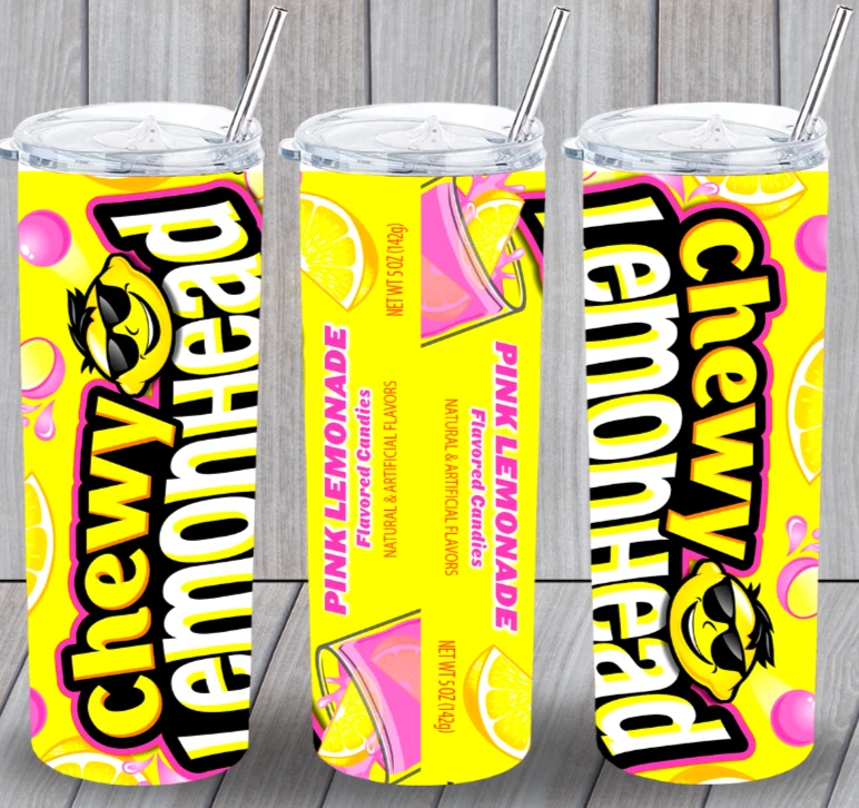 Chewy Lemonhead Lemonade Candy Multicolor 20oz Insulated Tumbler Lid Straw New
