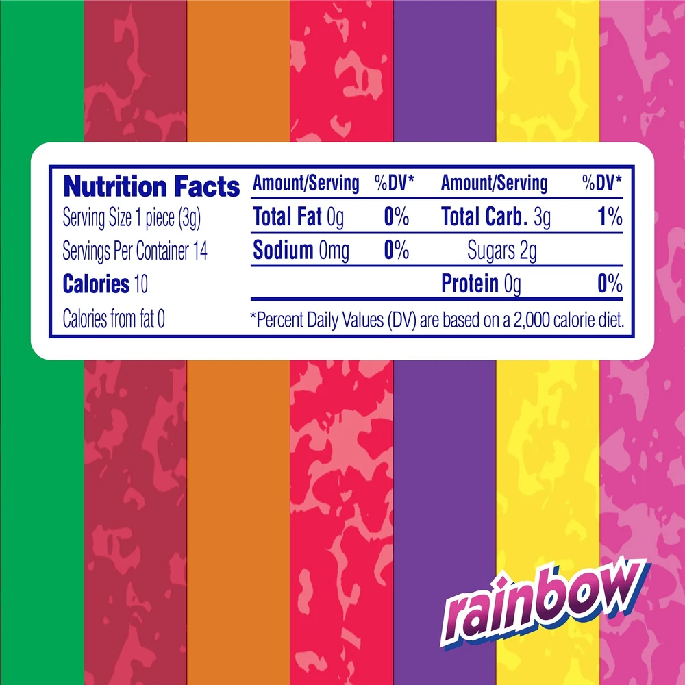 Chewy Mints are offered in several refreshing flavor varieties. CONTAINS: Each box contains 15 Fruit Chewy Rainbow Candy Rolls Product Note: Exposure to heat or sunlight may lead to melting/damage of product. Hence customers are expected to be available during the product delivery FEATURES: Each 1.32 ounce roll includes 14 pieces of Rainbow fruit flavored Chewy Mint candy FLAVORFUL: Rainbow fruit flavors include strawberry, watermelon, cherry, orange, raspberry, grape and pineapple FRUITY FRESHNESS: have a refreshing taste your mouth is sure to enjoy PARTY CANDY: Perfect green mint candy for the office, baby shower favors, wedding candy and events
