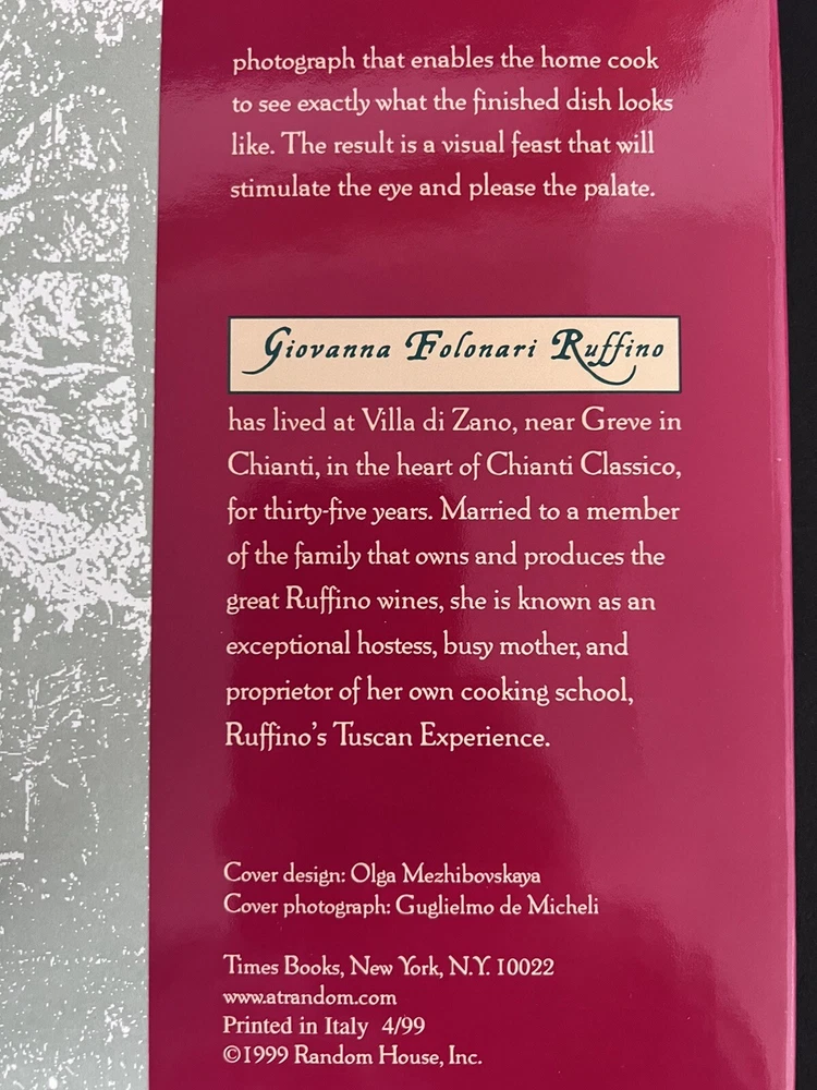 Chianti Family Cooking Hardcover Cookbook by Giovanna Folonari Ruffino