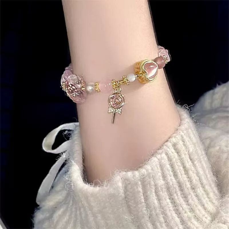 This is a vintage silver bracelet from China with a tassel style design. The bracelet features multicolor round stones, very good cut grade, and is sizable. It has a ball/bead chain and a sweet, charming aesthetic.