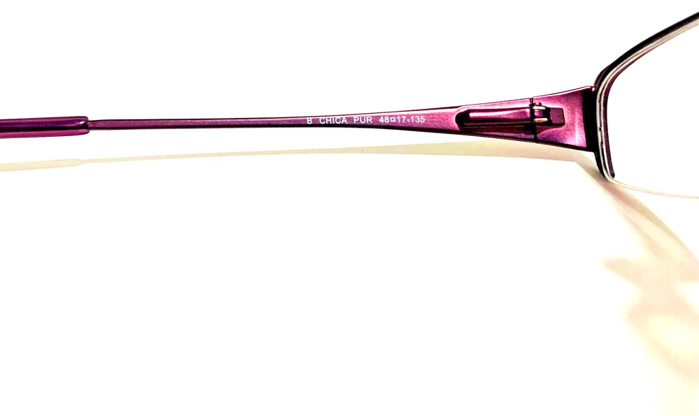 RACCOON STASH WELCOMES YOU! 100% Money Back Guarantee! NEW AUTHENTIC BONGO Chica Purple / Dark Burgundy Semi-Rimless Metal RX EYEGLASSES The frame is brand new, never used or worn! Note: Demo lenses may have some minor scratches from handling in store, but they are meant to be removed when installing your prescription lenses! COMES WITH GENERIC SLEEVE CASE and GENERIC CLEANING CLOTH! Model: Bongo Chica Purple Color: Purple / Dark Burgundy Lens Color: Clear RX Demo Size: 48-17-135 MM All items are packaged carefully for shipping to prevent any damage during transportation. International Buyers - Please Note: Import duties, taxes, and charges are not included in the item price or shipping cost. These charges are the buyer's responsibility. Please check with your country's customs office to determine what these additional costs will be prior to bidding or buying. If you have any questions please feel free to ask. Thank you for choosing us for your optical needs! Item ID: RV 009_123