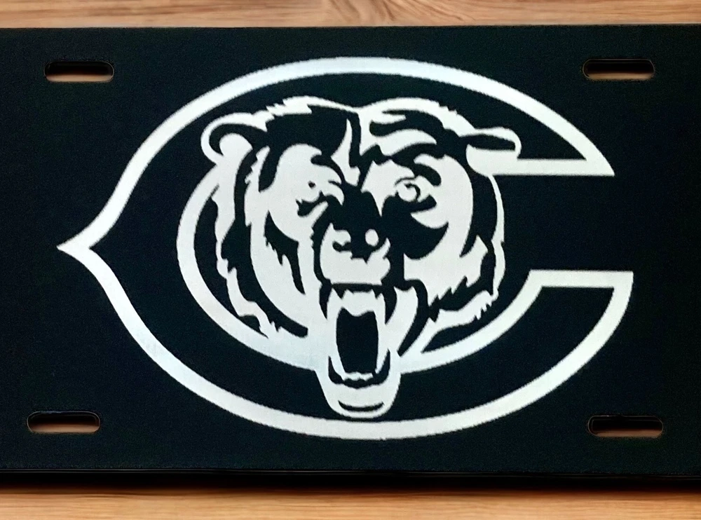 Show off your love for the Chicago Bears with this stylish and high-quality laser engraved license plate. Made from durable aluminum with a sleek matte black finish, this license plate is the perfect addition to any car. The plate is suitable for use on the front of your vehicle and attaches easily with screw-on attachment. The plate features the iconic Chicago Bears logo along with additional themed elements such as "Bears Football" and "Sports Teams". It is road legal and universally fit for use on any car. Whether you're a die-hard fan or just looking for a unique accessory to add to your car, this license plate is a great choice.