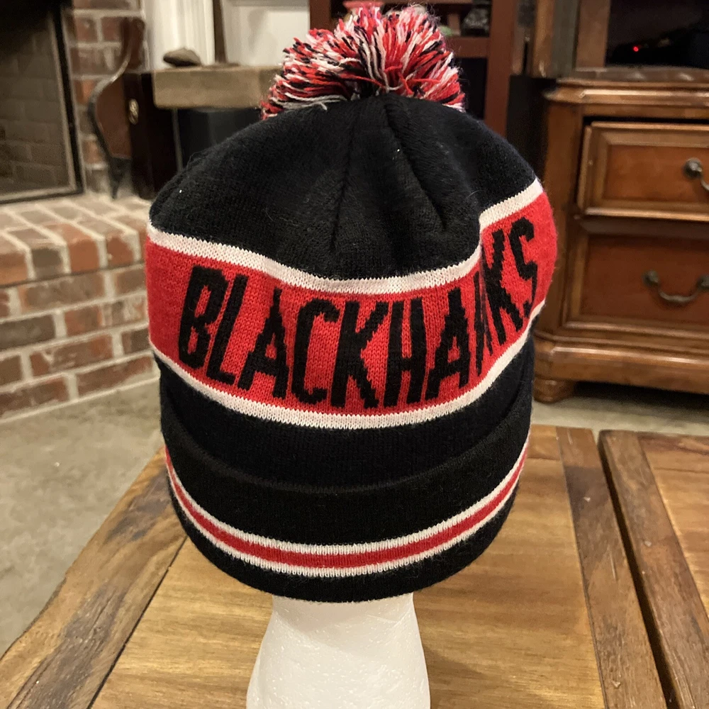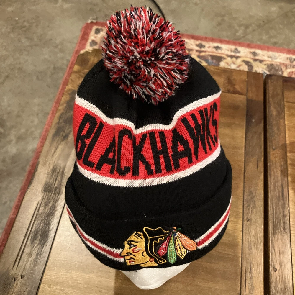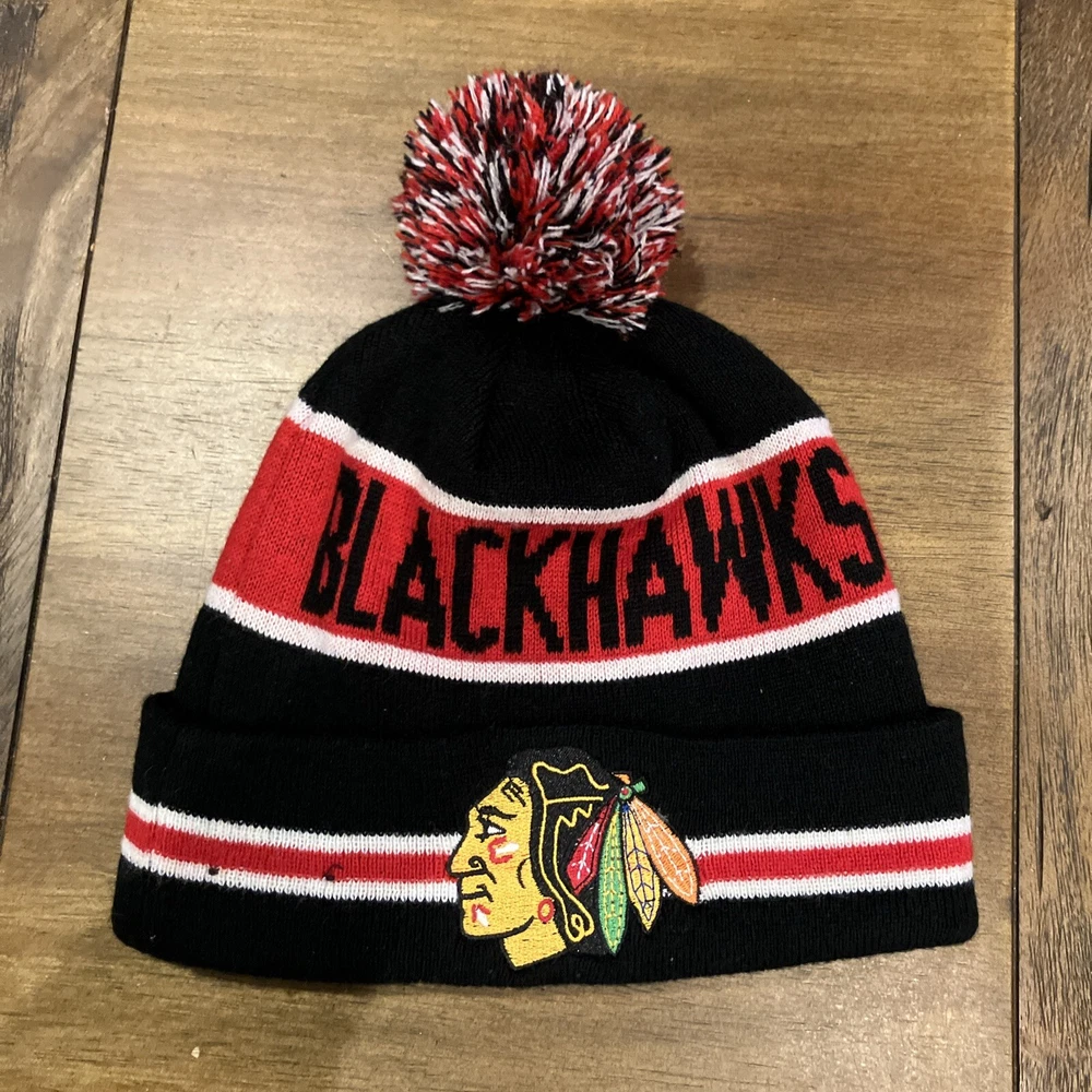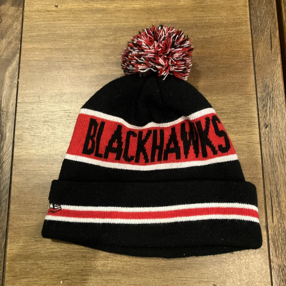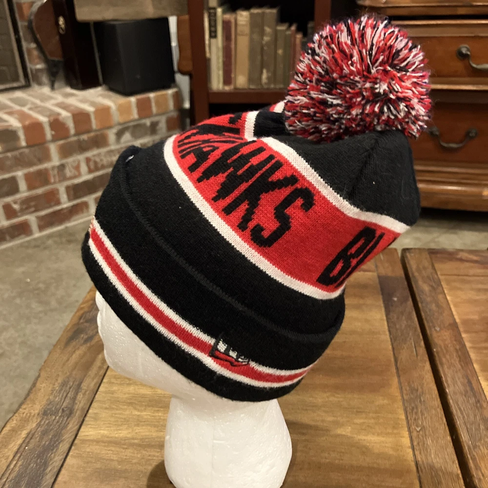 Show your support for the Chicago Blackhawks with this officially licensed New Era beanie hat. Perfect for any hockey fan, this black and red cap features the team's logo in a stylish puff design. Made for unisex adults, the one size fits all hat is great for regular season games or just casual wear. The high-quality cap is made in China and is part of the National Hockey League (NHL) fan apparel collection. Whether you're a die-hard fan or just looking for a stylish winter accessory, this Chicago Blackhawks beanie hat is a must-have item. Get yours now and show your love for the sport and the team!