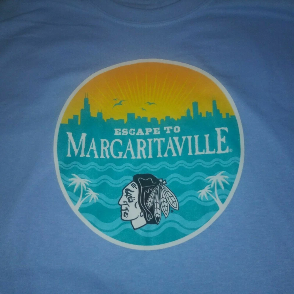 Up for auction is an awesome 1 sided unworn rare limited edition shirt that was given out to the first 1,500 people into the hawks pre party before the Jimmy Buffet celebration game on 2/22/18. Condition = New It measures. 30 & a 1/2 inches Long ---AND--- 23 inches wide See my other auctions for more. Thanks