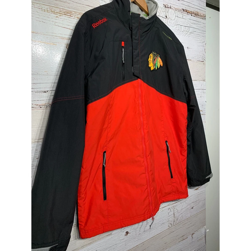 Brand---Reebok Center Ice Color---Red, Black Stains or Holes---None, Excellent Used condition Tagged Size---Medium Actual Measurements---23" Pit to Pit___32" Length Fabric Content---Nylon, Polyester Please check out my other listings and bundle for a better price and shipping discount.