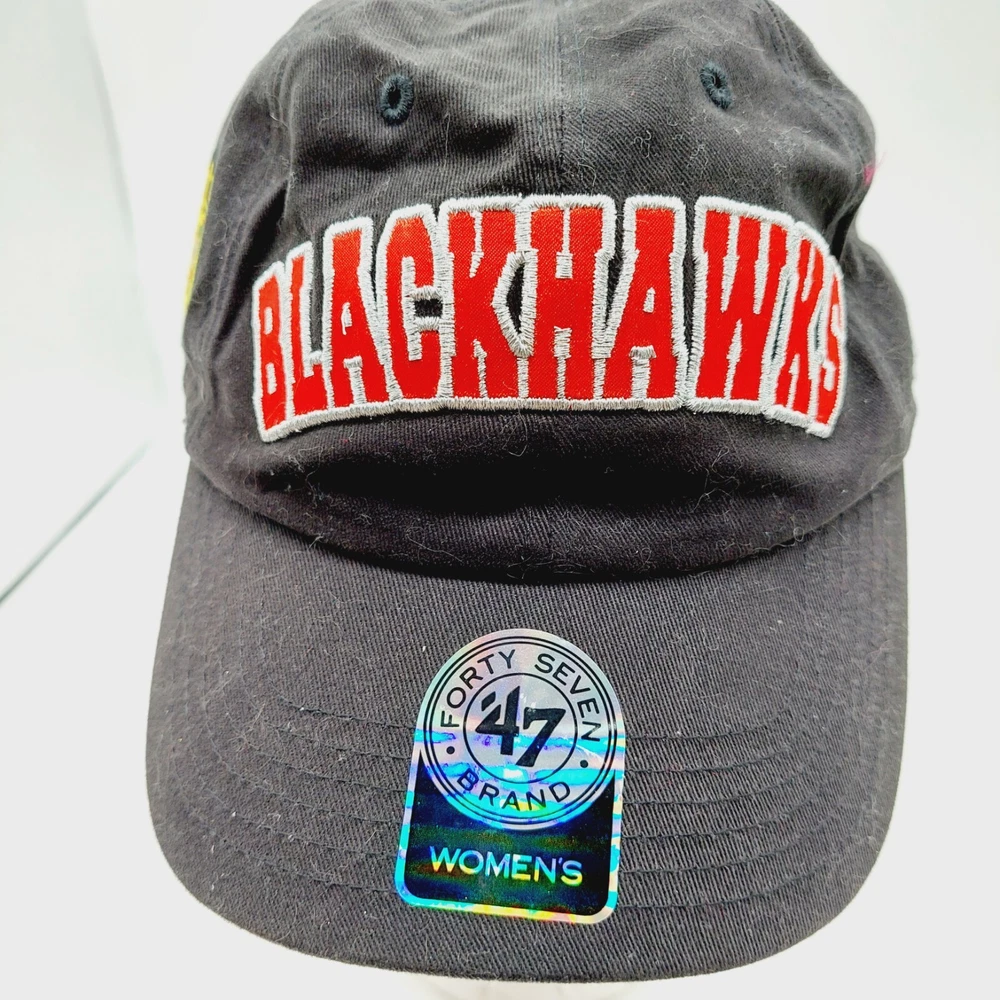 Chicago Blackhawks NHL Vintage Hockey Hat Strapback Buckle Black Womens