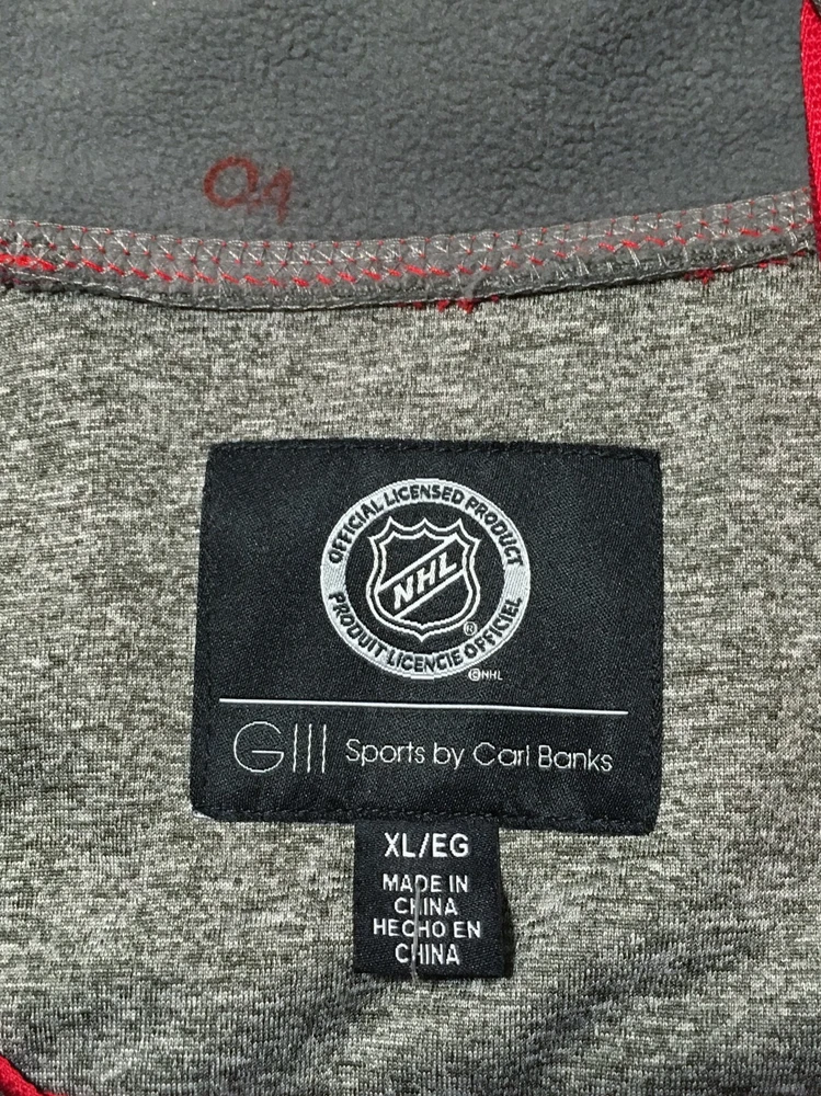 CHICAGO BLACKHAWKS GIII SPORTS BY CARL BANKS XL 1/4 ZIP SOFT SHELL PULLOVER JACKET RED & GRAY HAND POCKETS & CHEST POCKET 25 INCH CHEST (PIT TO PIT) 29 INCH LENGTH (TOP OF SHOULDER TO HEM) GUARANTEED 100% GENUINE AND AUTHENTIC *************************************************************** *We specialize in providing our Customers with High End, Brand Name Designer Clothing at an Affordable Cost....regardless of whether it's brand new or pre-owned. Our goal is for customer satisfaction!! If you have any questions or concerns feel free to reach out and contact us! 2 All Pre-Owned Clothing is Properly Cleaned & Laundered as per ebay policy standard