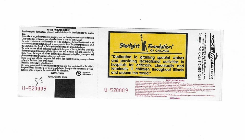 Chicago Blackhawks vs Winnipeg Jets Unused Hockey Ticket From May 1, 1995 Here is 1 unused Chicago Blackhawks vs Winnipeg Jets Hockey Ticket from May 1, 1995. The game took place the United Center in Chicago, Illinois. The ticket is in good condition and would make an excellent addition to your collection. Payment Payment is due within 24 hours of sale. Shipping Your item will be shipped within 24 hours of receipt of payment via US Mail. Terms and Conditions All Sales are final. No Refunds