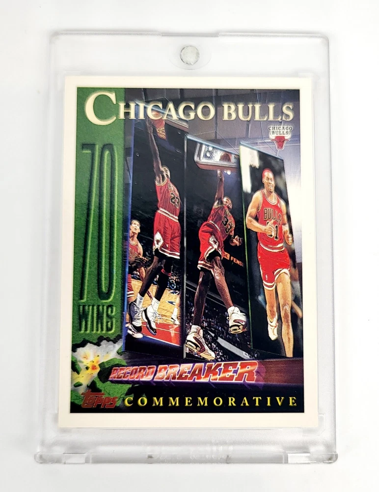 This limited edition sports trading card features the legendary Chicago Bulls team from the 1996-97 season, including Michael Jordan, Scottie Pippen, Dennis Rodman, and more. The card is part of the exclusive Topps set and bears the number 72. It is a must-have for any basketball fan and collector. The card highlights the team's impressive record of 72 wins and captures the essence of the era with its vibrant design and high-quality printing. Whether you're a fan of the NBA or simply appreciate great sports memorabilia, this trading card is a fantastic addition to any collection. One touch not included. Card will be well protected and shipped in top loader case.