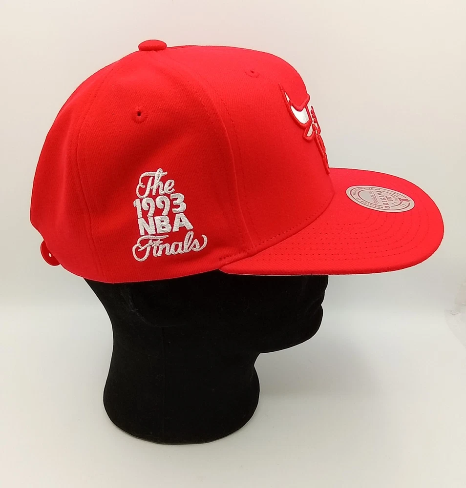 NWT. Show your love for the Chicago Bulls with this Mitchell & Ness 1993 NBA Finals Cap Snapback. This red cap features the iconic Bulls logo on the front and "THE 1993 NBA FINALS" on the side. It is a unisex adult hat made in China with embroidered details. Perfect for basketball fans, this cap is a great way to commemorate the 1993 NBA Finals. Whether you're a collector or just looking for a stylish accessory, this cap is a must-have. Get your hands on this limited-edition Mitchell & Ness 1993 NBA Finals Cap Snapback today! HAT BOX 6 - 1314