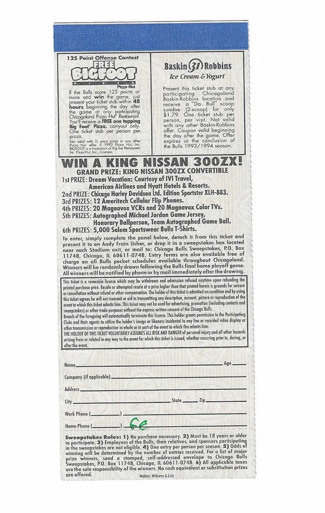 Chicago Bulls Phantom Game H Playoff Basketball Ticket From 1994 Here is 1 Phantom Chicago Bulls Game H Playoff Basketball Ticket from 1994. The game would have taken place at The Chicago Stadium in Chicago, Illinois. The ticket is in good condition and would make an excellent addition to your collection. Payment Payment is due within 24 hours of sale. Shipping Your item will be shipped within 24 hours of receipt of payment via US Mail. Terms and Conditions All Sales are final. No Refunds