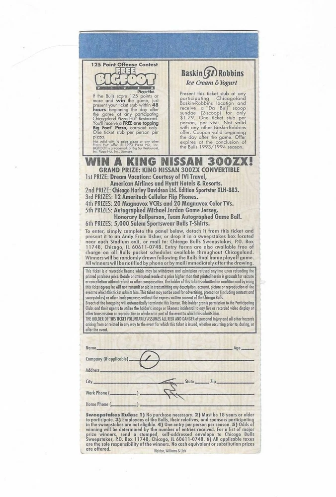 Chicago Bulls vs Atlanta Hawks Unused Basketball Ticket From November 8, 1993 Here is 1 unused Chicago Bulls vs Atlanta Hawks unused Basketball Ticket from November 8, 1993. The game took place at The Chicago Stadium in Chicago, Illinois. The ticket is in good condition and would make an excellent addition to your collection. Payment Payment is due within 24 hours of sale. Shipping Your item will be shipped within 24 hours of receipt of payment via US Mail.